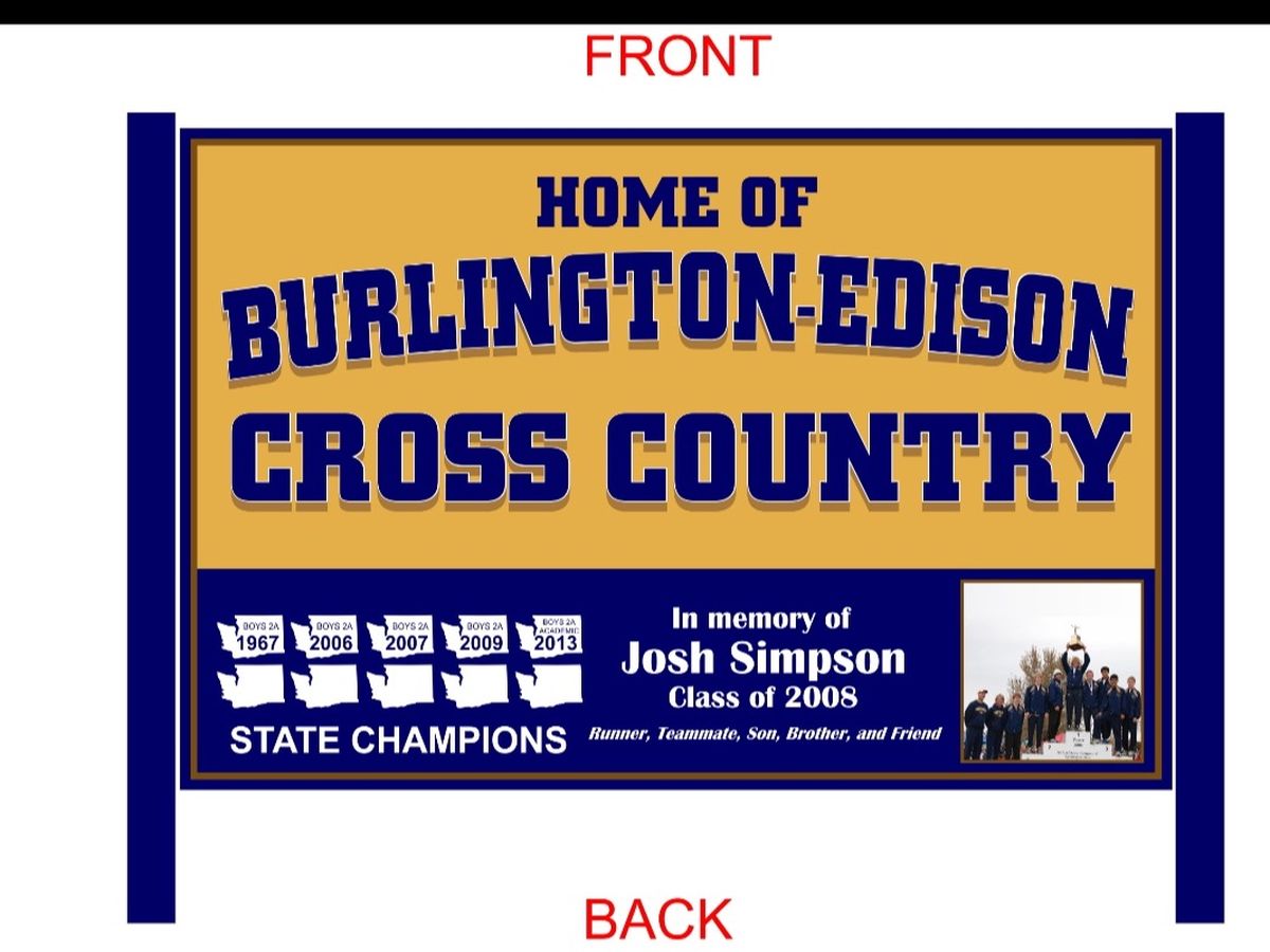 To commemorate Josh’s life and the achievements of him and his teammates, a sign has been designed and will soon be permanently installed at the airport running trails near the Ovenell Road parking lot. We are hoping you will consider donating to help fund the cost of the $1000 sign. Donations of any amount will be gratefully accepted. If we exceed our fundraising goal, excess contributions will be contributed to the Josh Simpson Scholarship fund that has been initiated by Jim and Tanya Simpson.