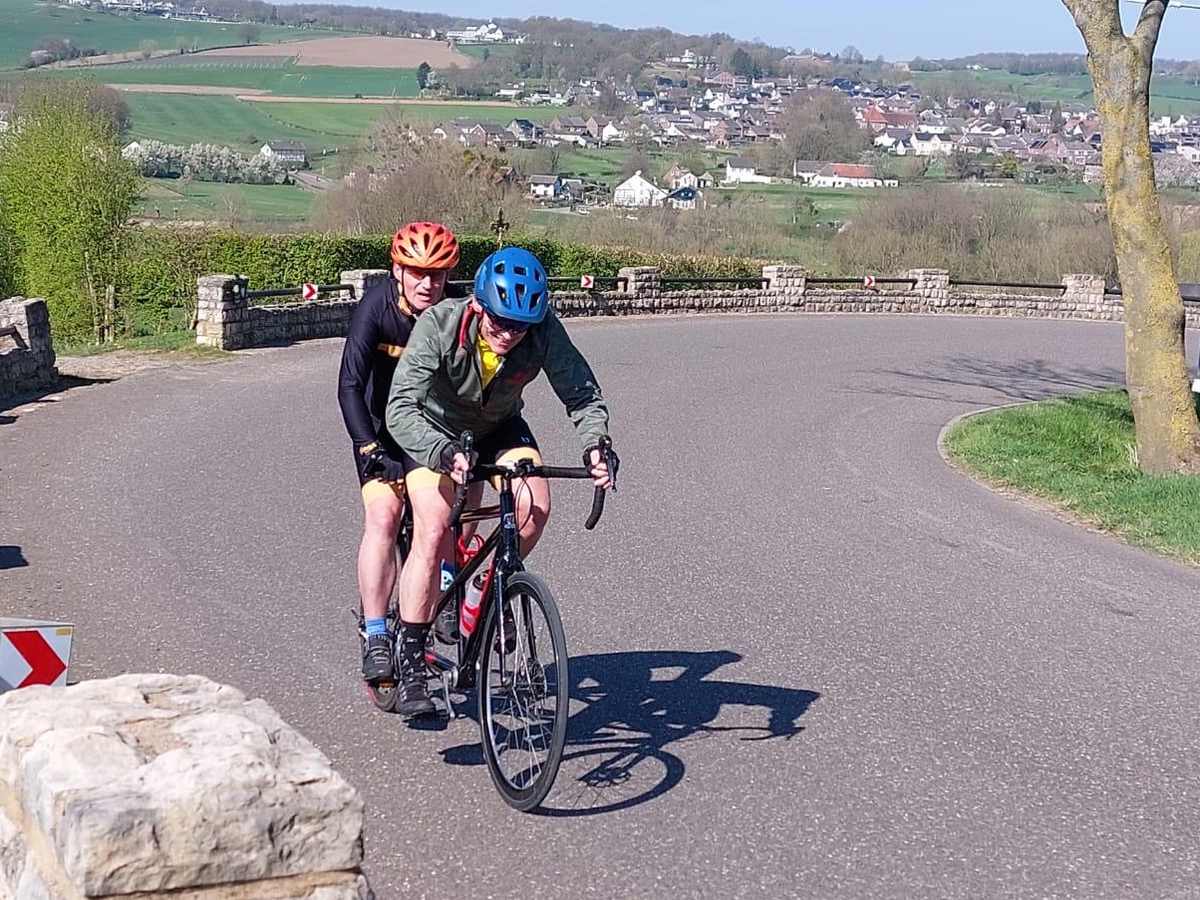 Je kunt je voorstellen dat fietsen hierdoor lastig is, daarom heeft Tom hulp van zijn buddy Wout! Ook Wout houdt erg van fietsen en doet dit al een aantal jaar. Het gebruik van de tandem is ideaal, want zo kan Wout mooi de koers bepalen, en is Tom de motor in het team!