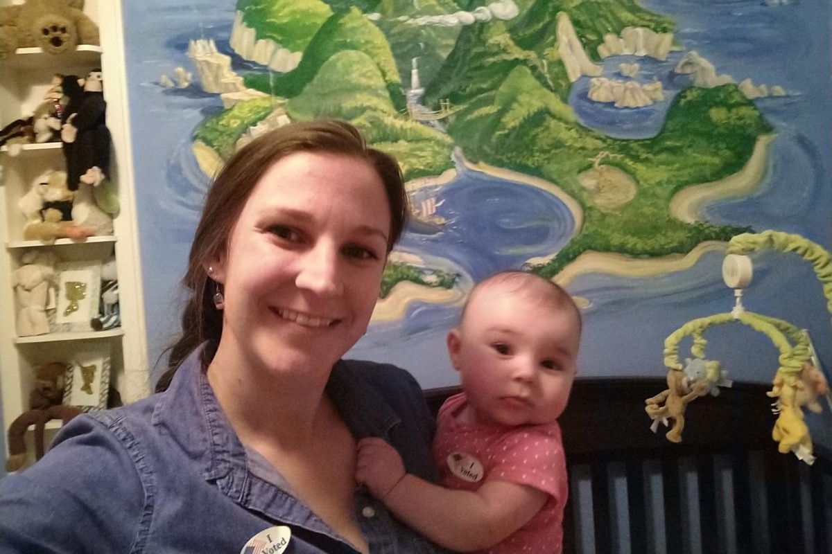 Jess and Penny in her nursery with part of the mural Penny's Grandad painted on her wall. Its Neverland from Peter Pan.