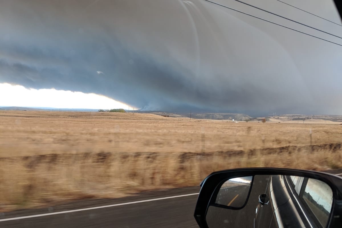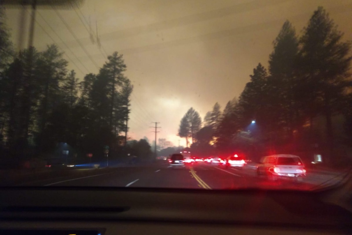 A photo taken as they left Paradise. This was taken in the morning, look how dark the sky is- terrifying!