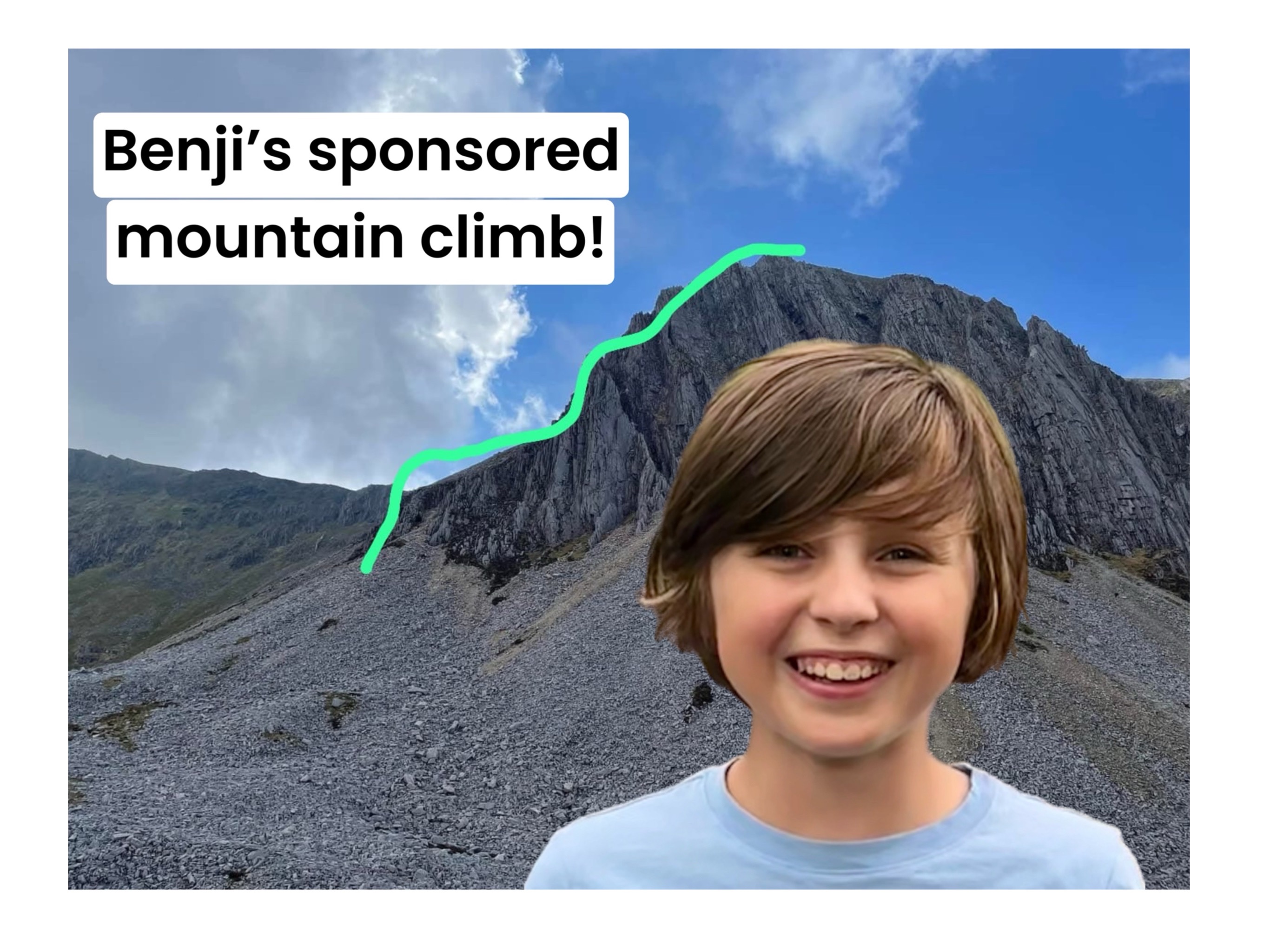 Hi, I'm Benji, I'm 11 years old and I’m going to be climbing Cadair Idris in Wales to raise money for some amazing charities!