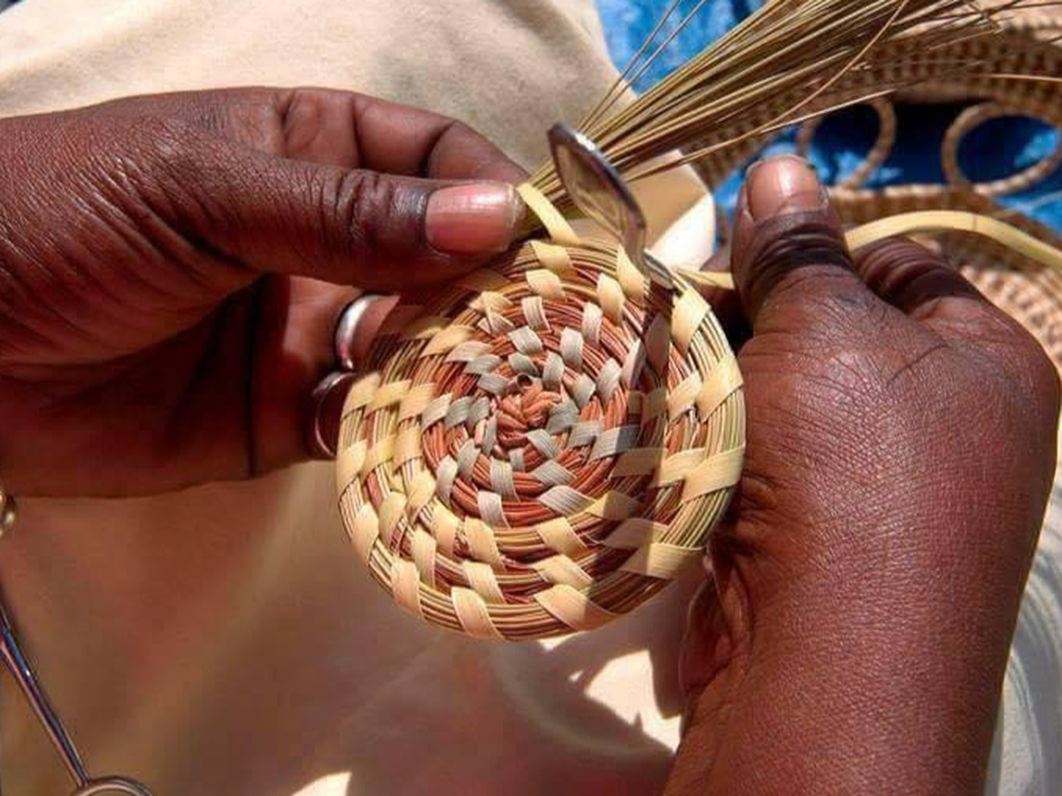 Madame Fadel vende in Senegal i suoi cesti al bordo di una strada , sotto un capanno ormai logoro di canne legate assieme.