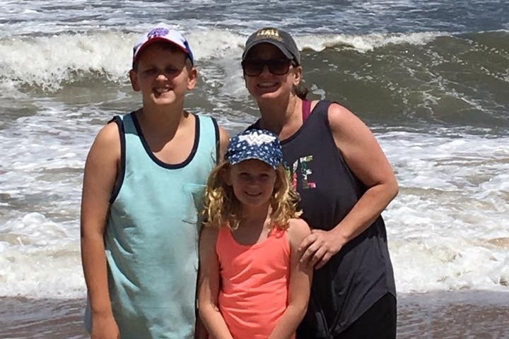Beth, Sean and Maggie on vacation in Virginia Beach in July 2018.