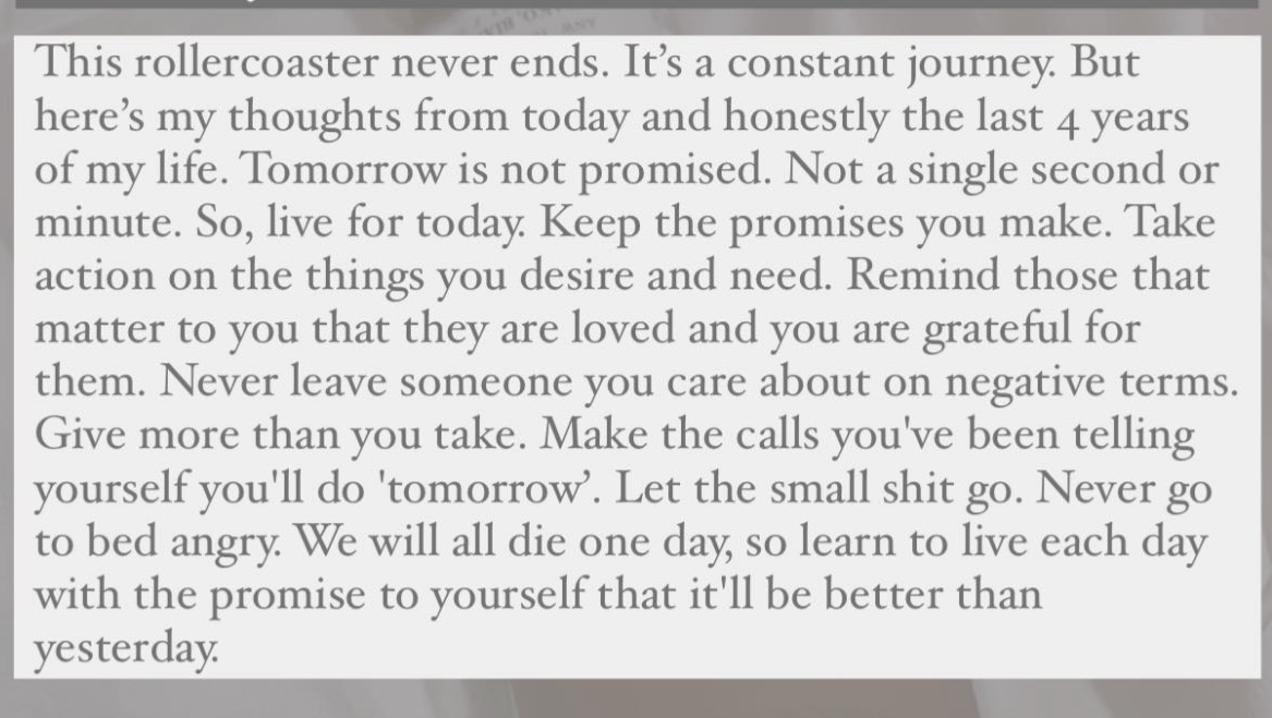 Bianca was the definition of strength. Despite the physical and emotional pain she was in from time to time, she was always there for anyone she met. You needed a ride? She’s got you. You needed money? She’s got you. Your stomach hurt? She’s suggesting foods and meds to take. I have never met someone more selfless than Bianca. She was someone you could meet for 5 minutes and feel like you knew for a lifetime. She never wanted sympathy or help, she just wanted to create everlasting memories and live life to the fullest.
