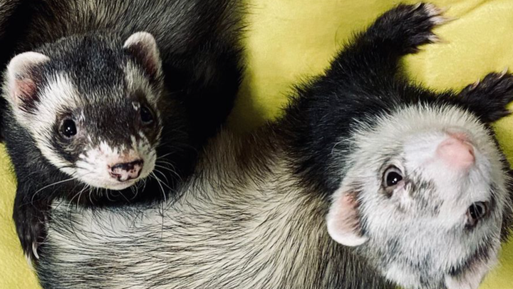 Hi, we’re Jacquelyn and Zach—and we’re the incredibly lucky "ferrents" to two of the most fun, mischievous, and deeply loved ferrets in the world: Milton and Sully.
