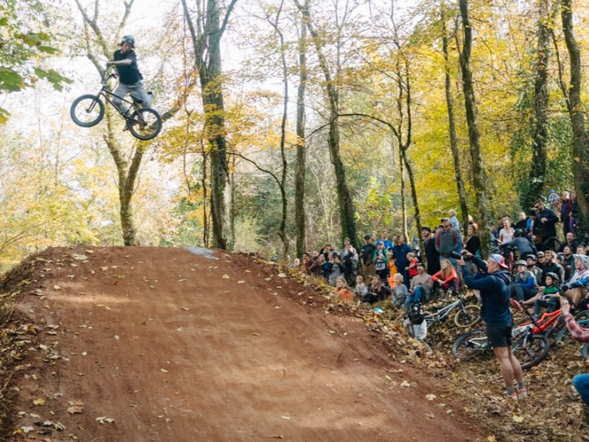 Inspiration images are from Bakers Creek in Knoxville on Devil’s Race Track trail. The fine folks at our sister SORBA Chapter , AMBC do an amazing job with their trails and events and we love this jump and want one of our own.