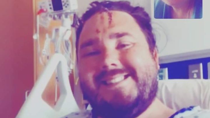 Having felt like his face had fallen off, sagging from the hairline to just above his eyebrows, we made sure to assess the gash. We took immediate action to place the skin and stop excess bleeding.