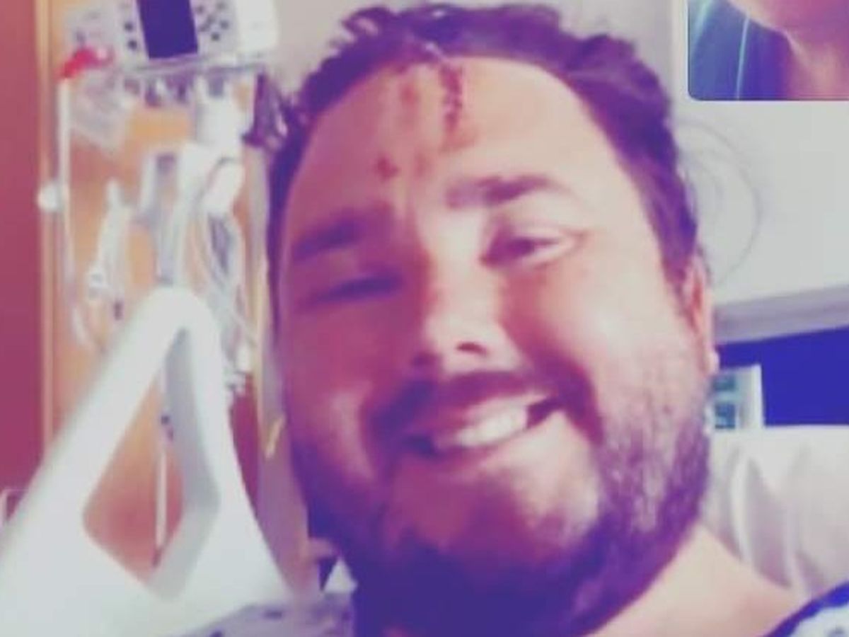Right arm, left ankle. 20 stitches and 12 staples in his forehead. They pulled a small pine cone from the deep gash across his hairline after cutting the clothes off his body inside the ER.