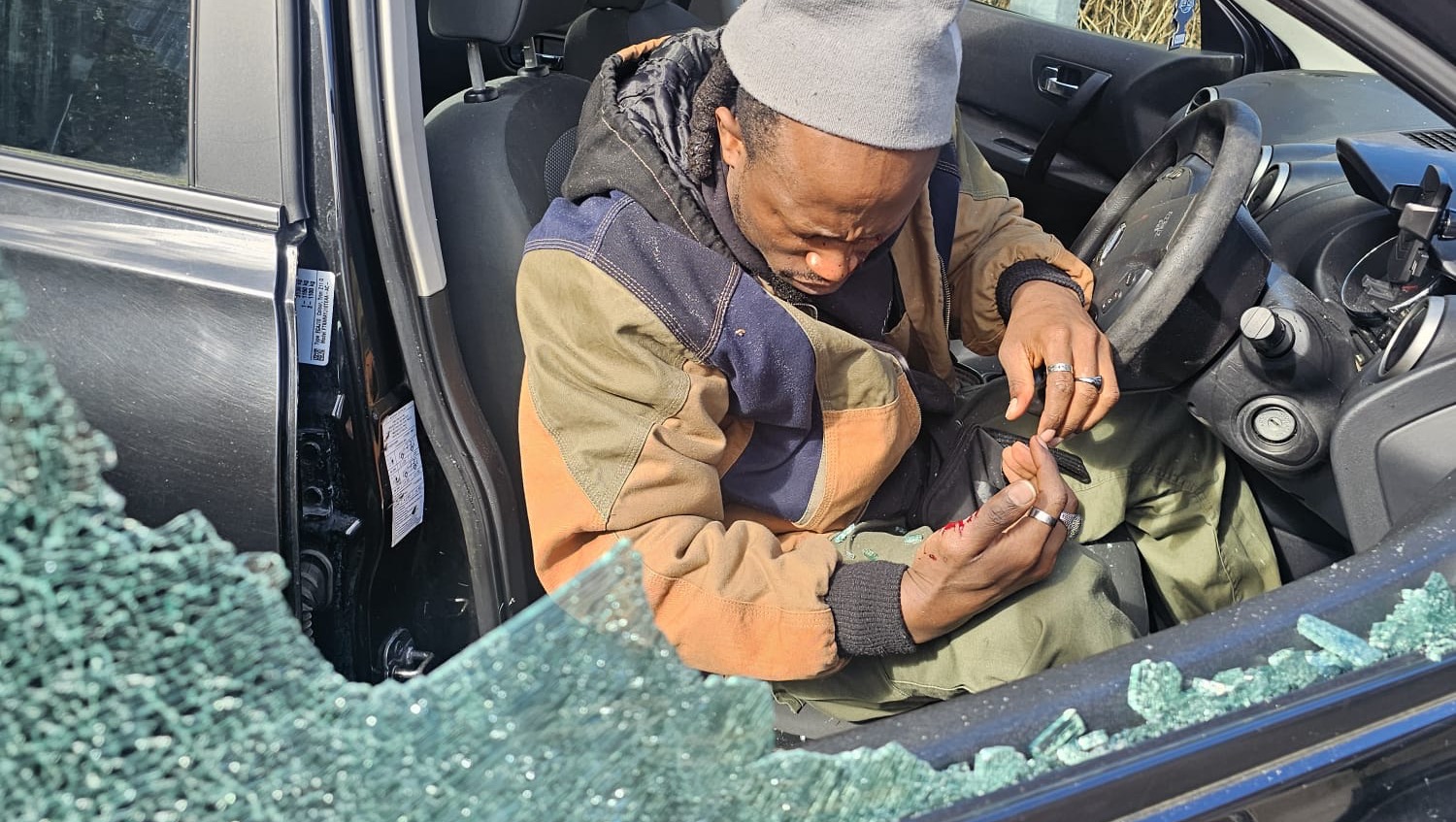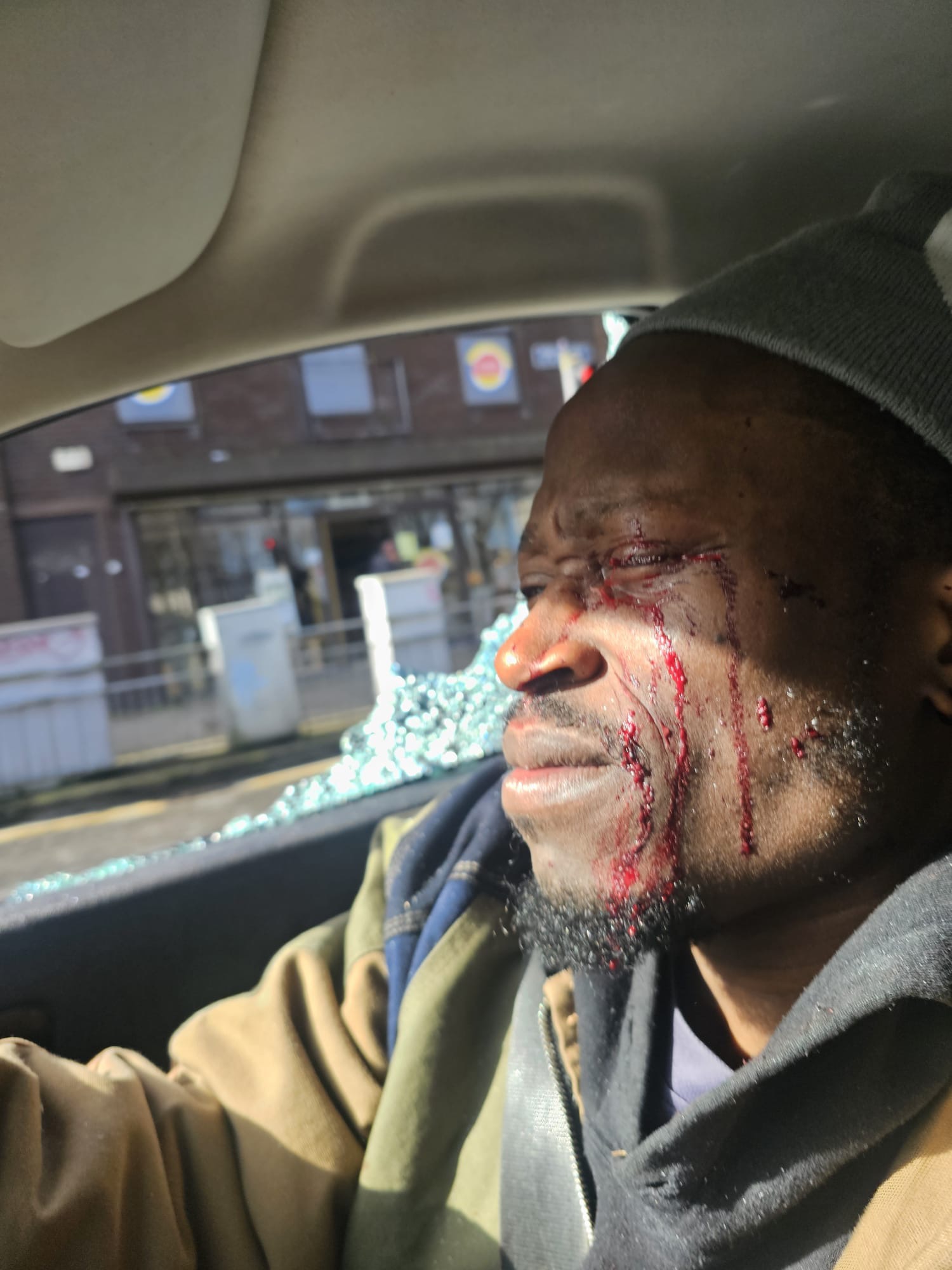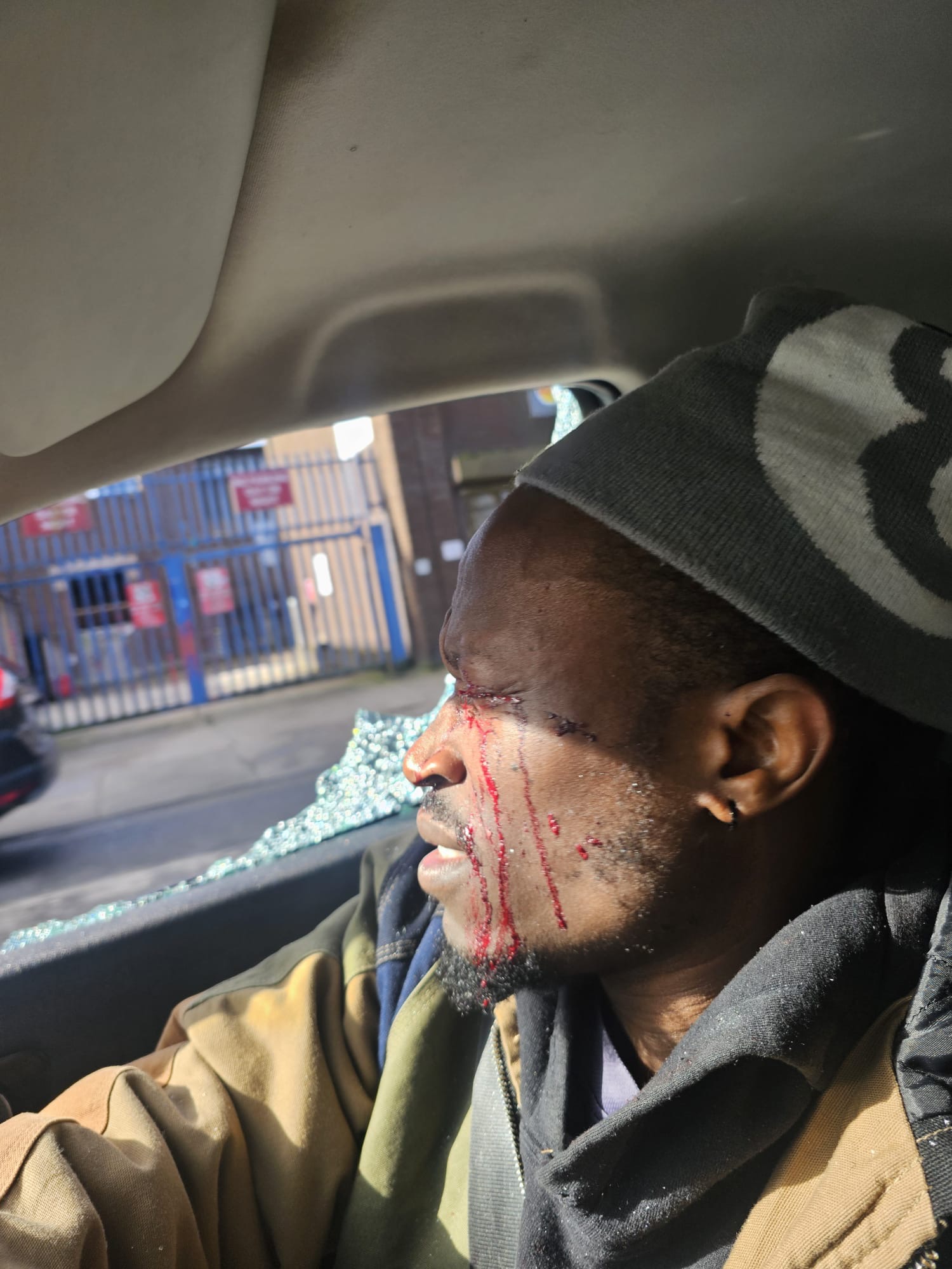 He began to beat my car, then he struck and shattered the driver’s side window with the wooden bat which exploded shards of glass, like tiny knives, sprayed across my face and buried themselves deep into both of my eyes.