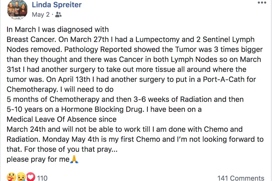 Anyone familiar with cancer knows that the battle is not an easy one, and that so much help is needed. Linda is such a strong woman. Please consider helping her and her family during this battle.