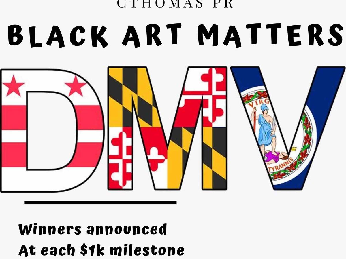 Hello Family! I’ve kicked off this GoFundMe with $1,000 toward “Black Art Matters DMV”. My goal is to raise $10,000 to share with TEN (10) local black artists. Music, photography, dance, tv/film, canvas/sculpture, fashion design you name it!