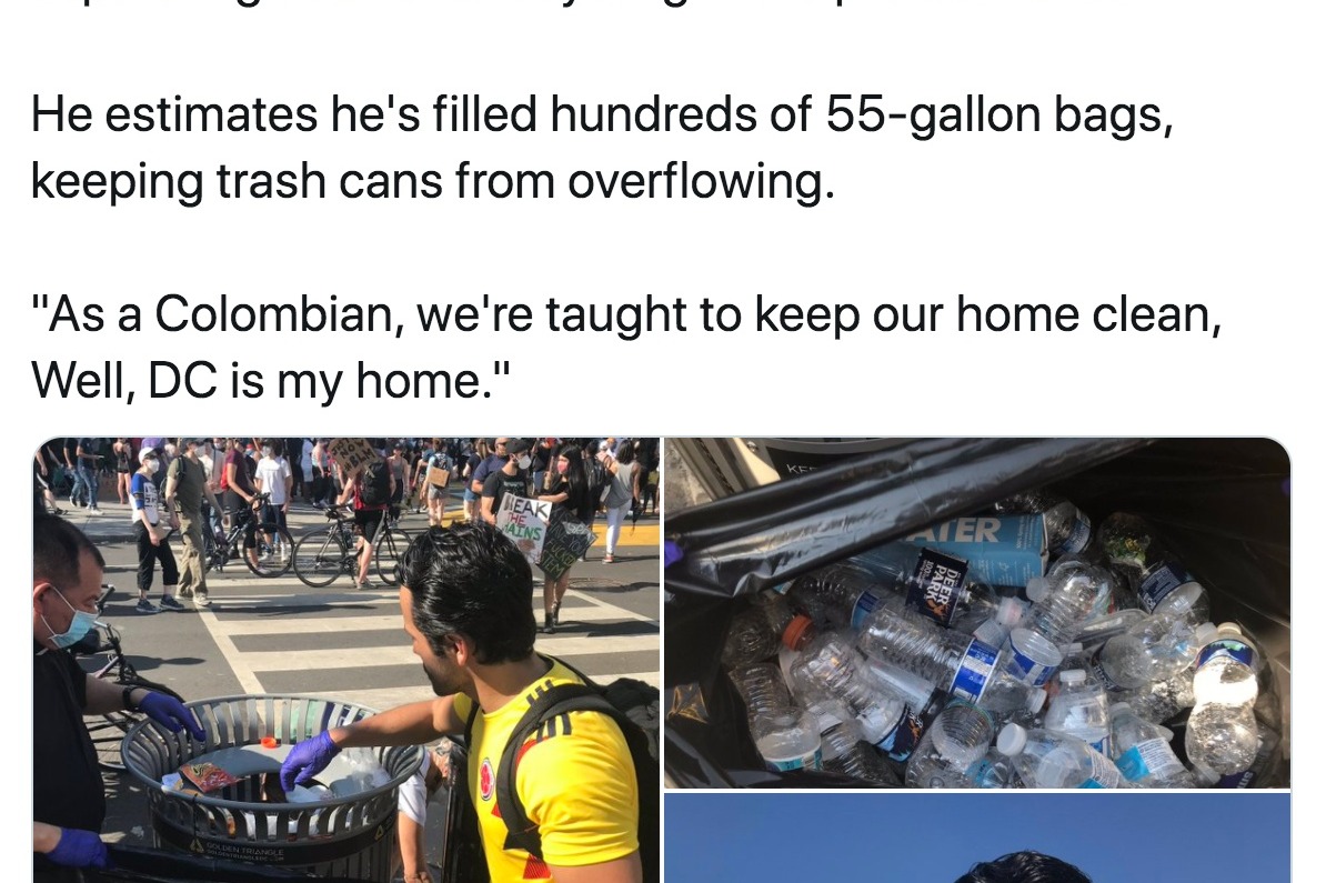CNN: http://www.cnn.com/videos/us/2020/06/11/washington-resident-diego-garces-protesters-picks-up-garbage.cnn?fbclid=IwAR2stPiJVtit1IZKy_juXnt1GBZ0V15b1Y4CUe21fAYGzdjA7AFfXug4MWk