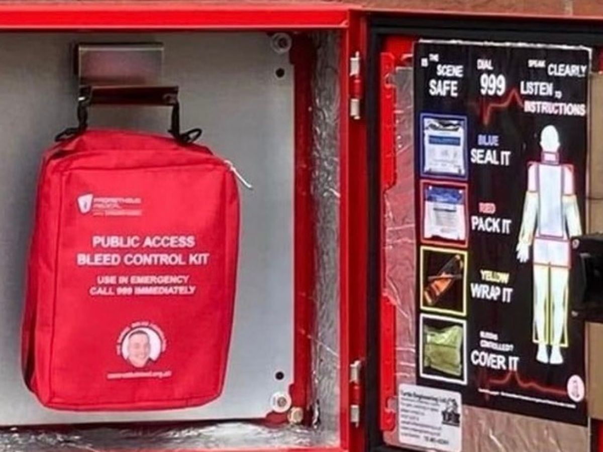These Cabinets contain life saving equipment to help someone should they need it to help stem the blood until paramedics arrive.