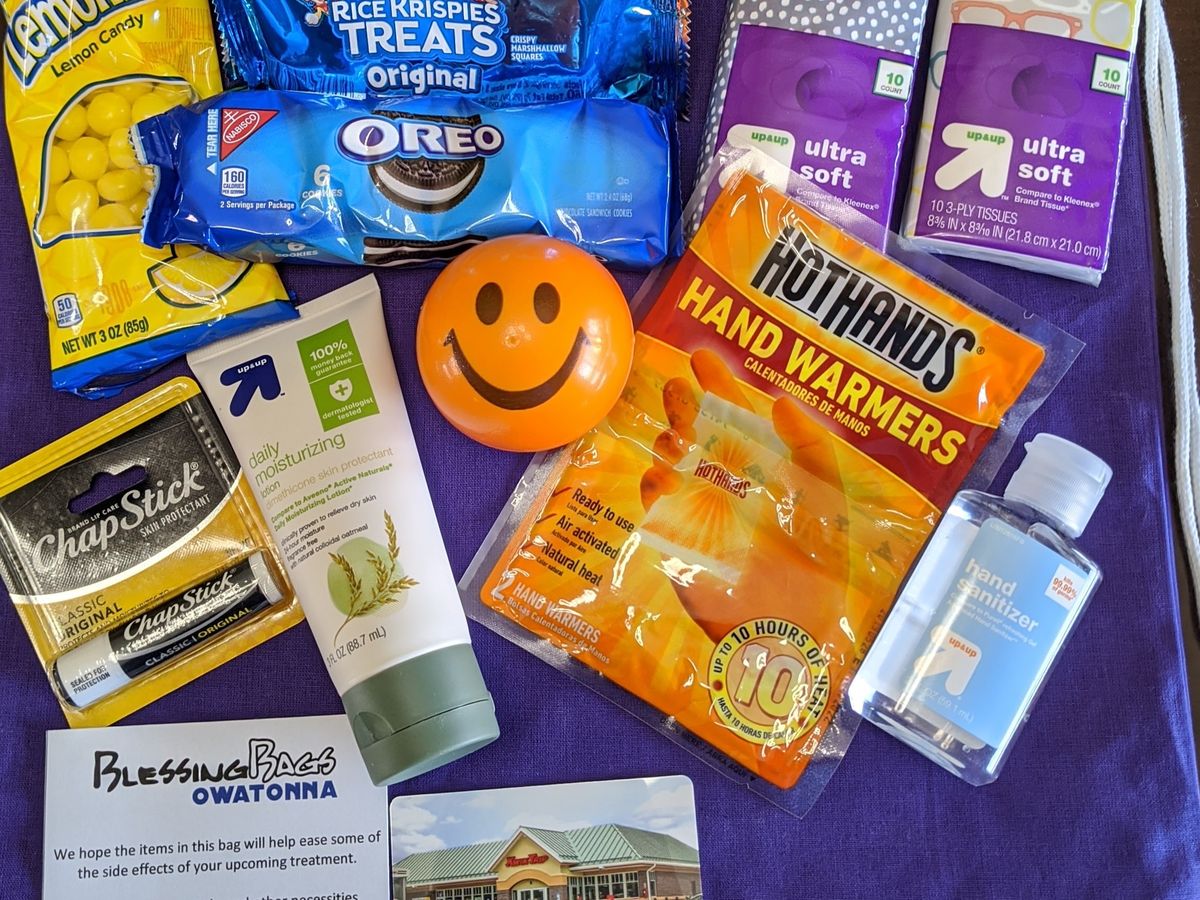 Facing a battle against cancer can be very challenging and overwhelming. The objective of these Blessing Bags is to help folks undergoing cancer treatments and supply them with the items they need to help ease the negative effects, while also providing some comfort. 100% of the money raised will go toward these bags. Each bag includes mints, lemon drops, lotion, chapstick, hand sanitizer, tissues, snacks, gas card, and a cloth bag that can be used to carry other items as well. Follow us on Facebook at