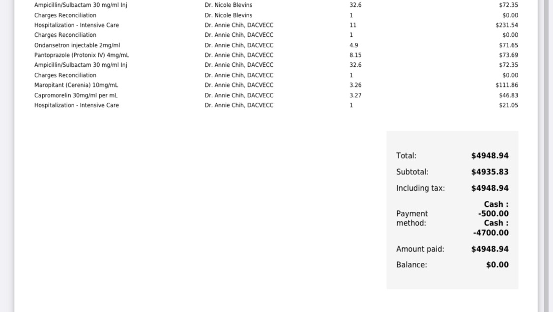 We have included screenshots of a portion of medical bills we have paid for out-of-pocket below (in other words, split between all our cash and credit cards). Please note this is not a comprehensive list of all costs associated with Blu's recovery.