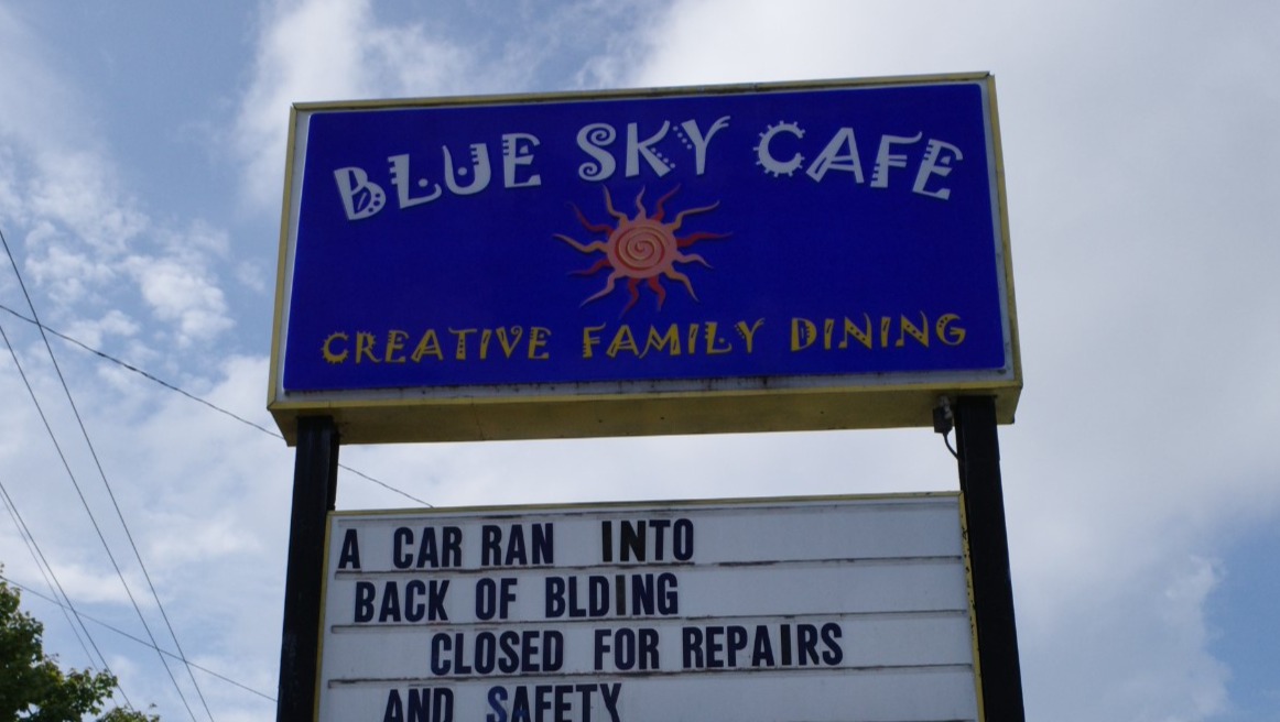 Hi, I'm Mark, my wife, Juli, and I have been the owners of Blue Sky Cafe for the last 21 years. On Wednesday, September 6th, a kind man was pulling out of the car wash bay behind the restaurant. His boot got wedged between the brake and gas pedal. His vehicle accelerated straight into the back wall of Blue Sky, he had to avoid hitting cars with people in them, he did the best he could, to not hurt anybody. Everyone is okay. His car accelerated to around 40 mph, the collision pushed the back wall of the restauraunt in about 8 inches. The building inspector came out and declared the building uninhabitable, as the wall holds up the I beam that supports the restaurant. We have insurance and we will repair and be open soon. However, our insurance doesn't cover hourly workers, only salaried workers. My staff is awesome, they love working at Blue Sky and they love our customers. They rely upon tip money to pay their bills. I am asking for your help to keep them able to pay their bills during this difficult time. Our customers were so kind and generous during the slow times of the Covid quarantine , now I'm asking for your help. I have had the pleasure of working with Val, Wanda, Blake, Maya, Marino and Kally for many years.