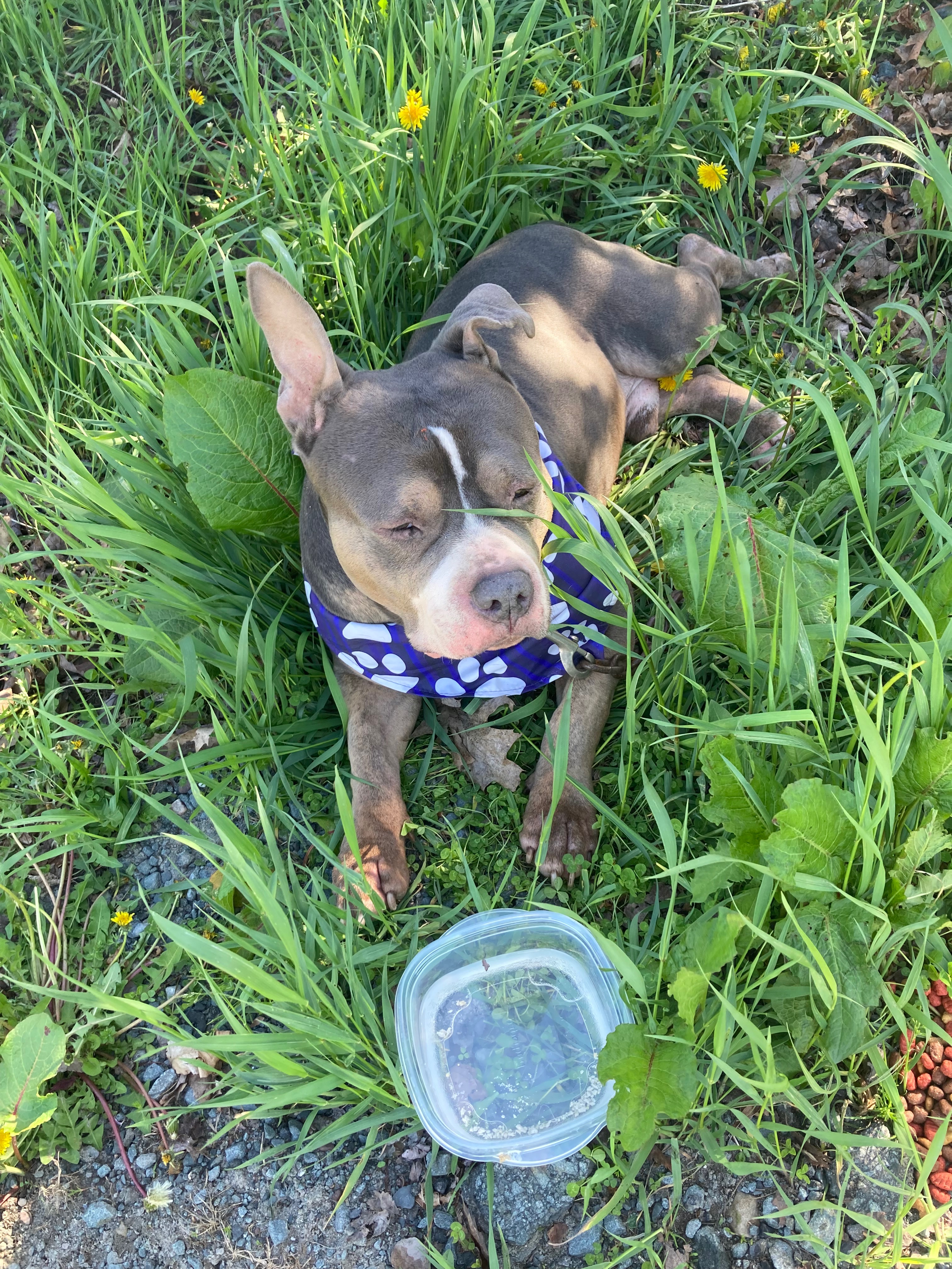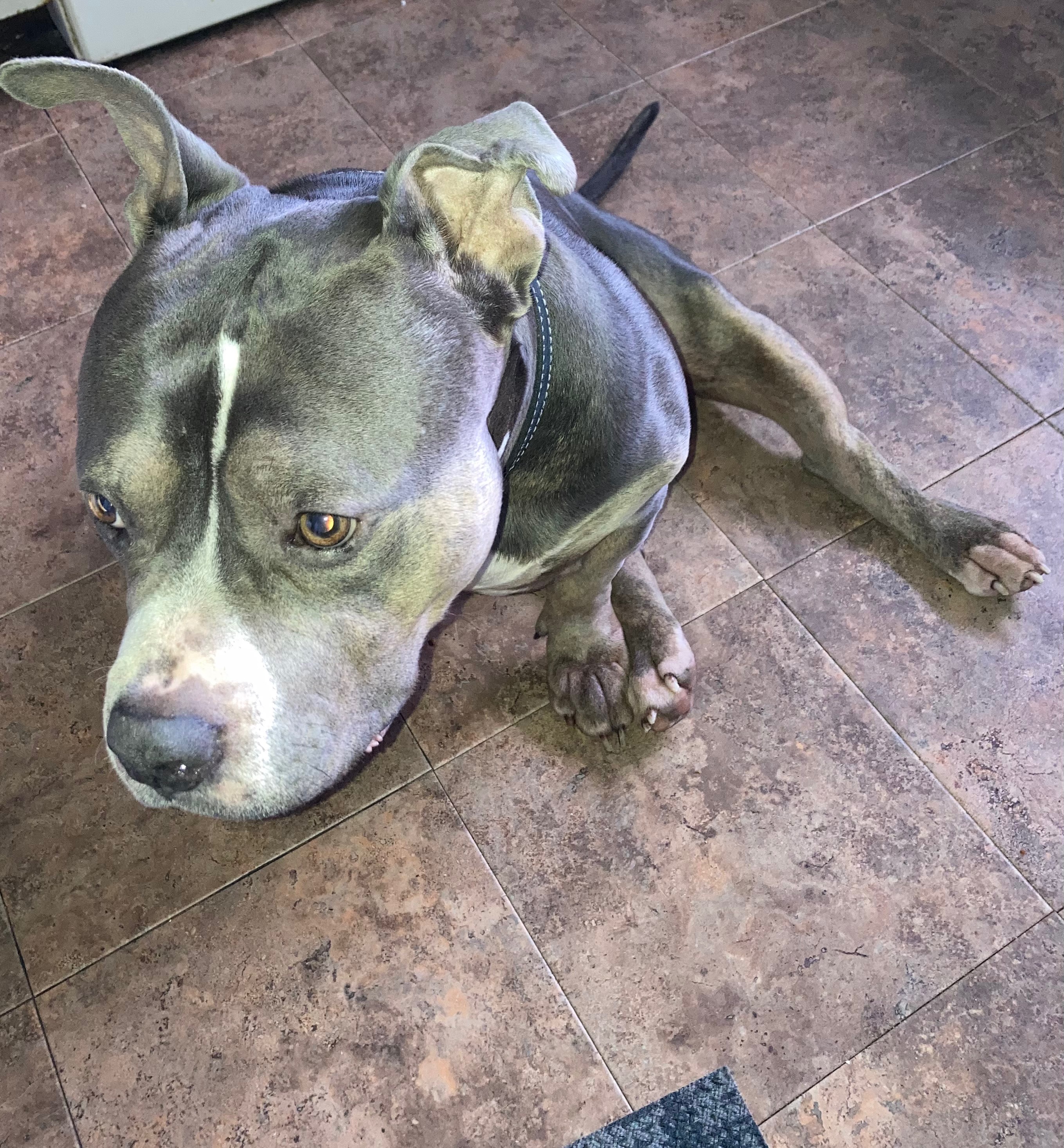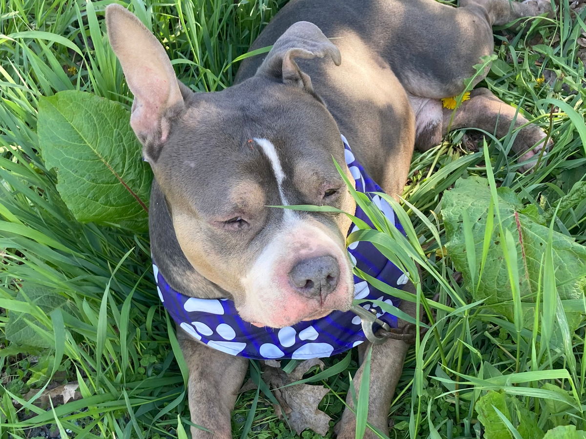 Hello, my name is Brooke. Yesterday afternoon, I rescued a dog named Blue. I found him chained outside for an extended period of time. After some asking around, I learned that he belonged to my neighbor, who explained that he had recently been diagnosed with cancer. Sadly, he had given Blue to someone else, who ended up neglecting him.Our neighbor is no longer in a position to care for Blue, so we took him in.
