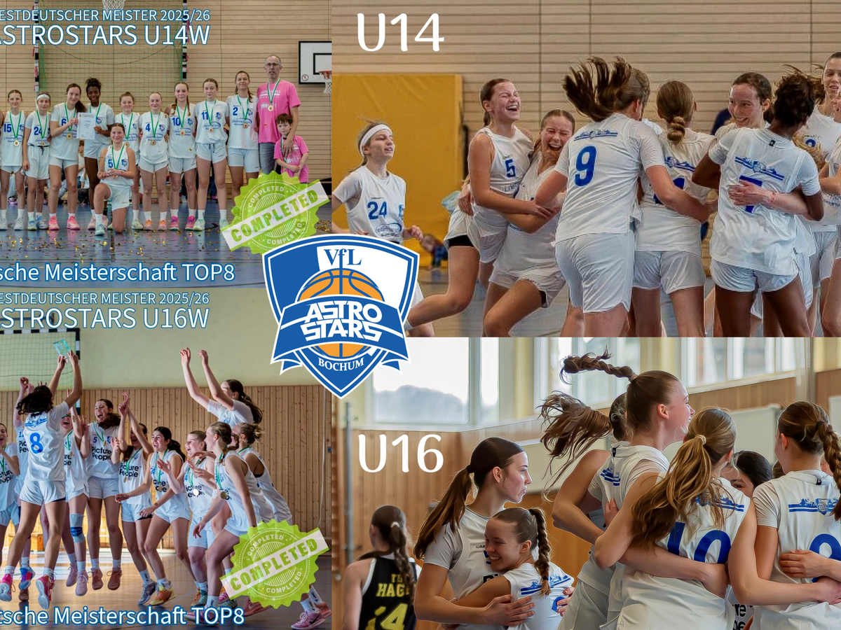 Unsere Mädchen der VfL Astrostars Bochum haben in dieser Saison das Unmögliche wahr gemacht: Sowohl die U14.1 als auch die U16.1 haben sich den Titel als Westdeutscher Meister gesichert.