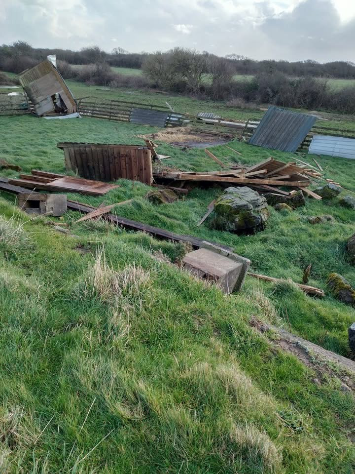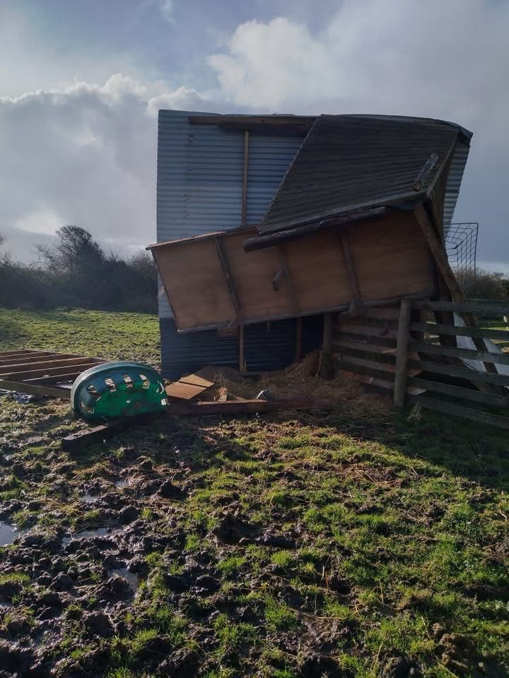 Storm Goretti tore through our little farm like a hurricane, destroying 2 field shelters, the goats stable, which ended up on top of a fence, and a section of our brand-new fencing that was only completed last summer.