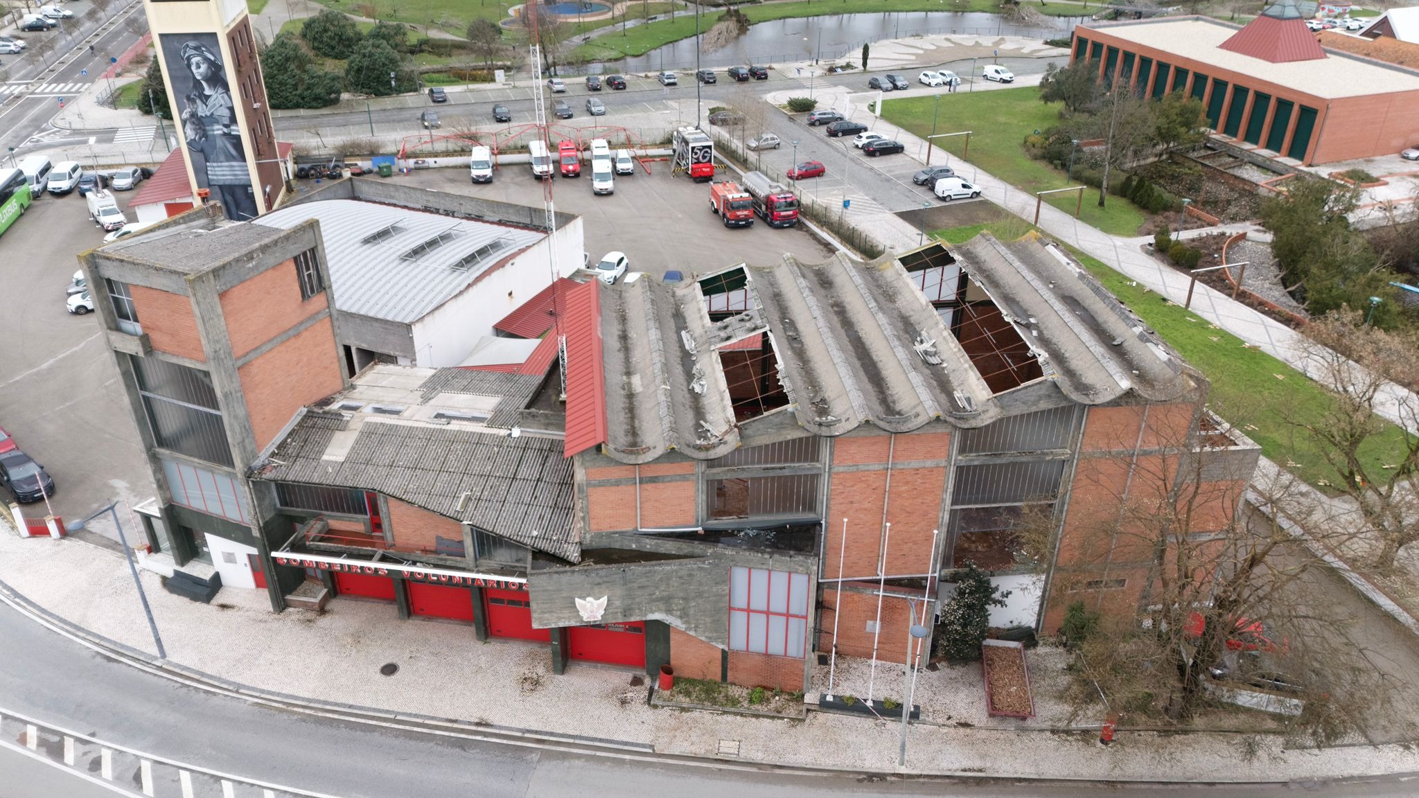 A tempestade Kristin deixou marcas profundas na Marinha Grande. Também o nosso Quartel foi atingido, nomeadamente o Ginásio dos Bombeiros ficou destruído, assim como os toldos da parada do quartel, afetando um espaço que é muito mais do que paredes e equipamento.