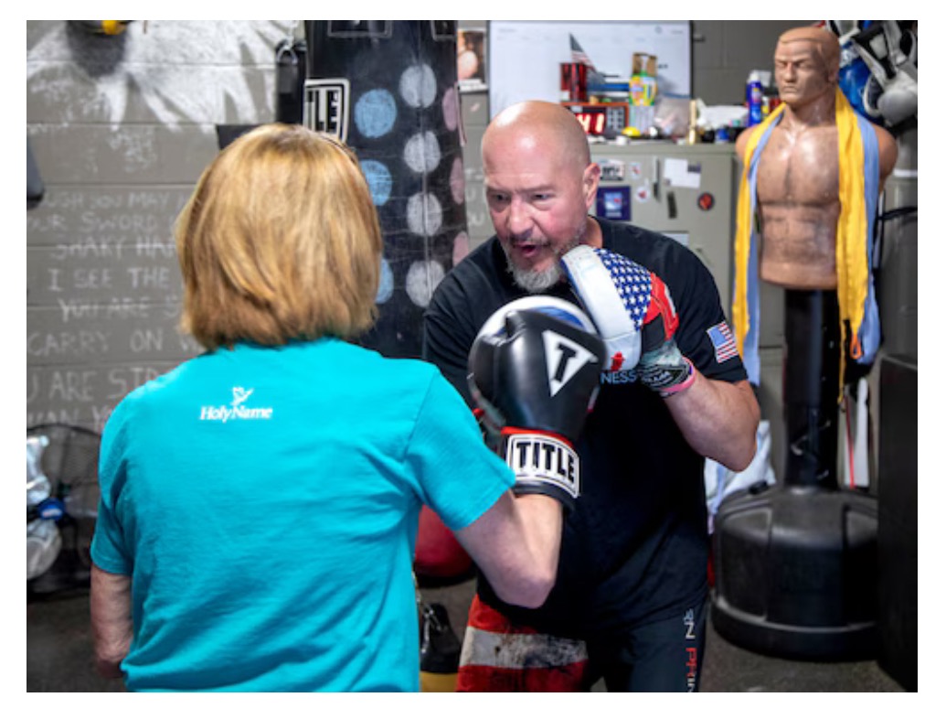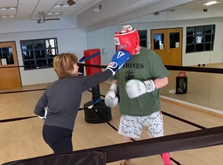 Hi! My mom, Kerry, was diagnosed with Parkinson’s Disease in 2022. She was losing balance and becoming very tired throughout the day. Slowly, her health was deteriorating. Then she learned about a boxing program offered at Holy Name Hospital fitness center.