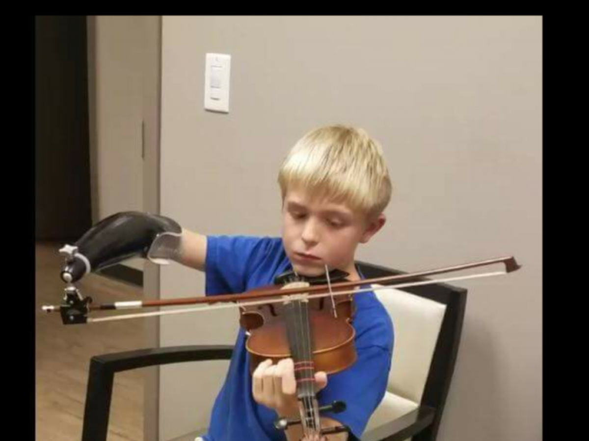 When my son Kaleb said he would like to play the violin in his school's orchestra, we immediately took the steps to get a prosthetic arm made for him.