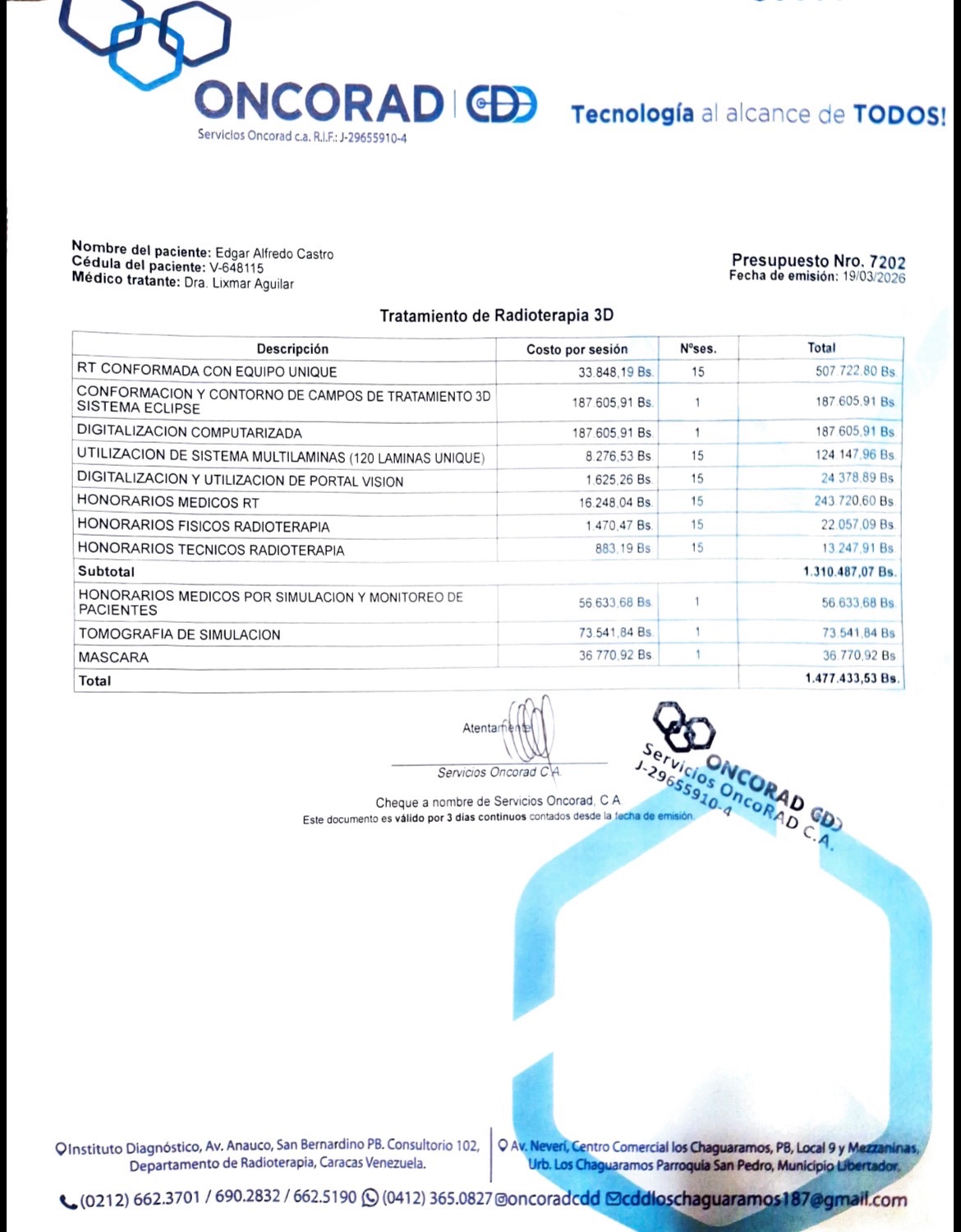 Actualmente, Edgar presenta debilidad en el lado derecho de su cuerpo, lo que ha afectado su movilidad y su independencia. Aun así, mantiene la esperanza y las ganas de seguir luchando. El tratamiento indicado por los médicos consiste en 15 sesiones de radioterapia especializada, además de medicamentos esenciales. Sin embargo, en Venezuela, el costo de estos tratamientos es muy elevado y la familia no cuenta con los recursos necesarios para cubrirlos.