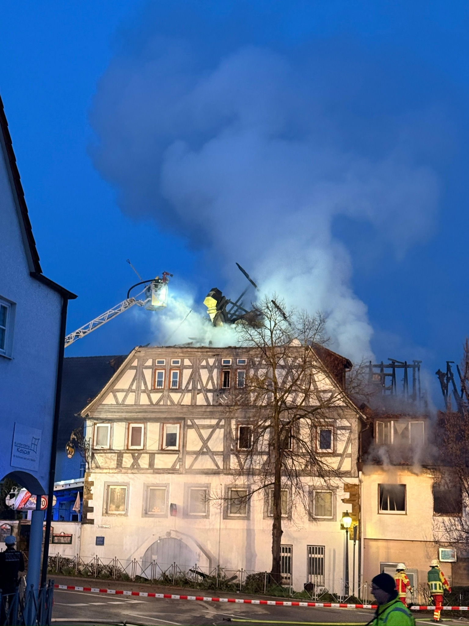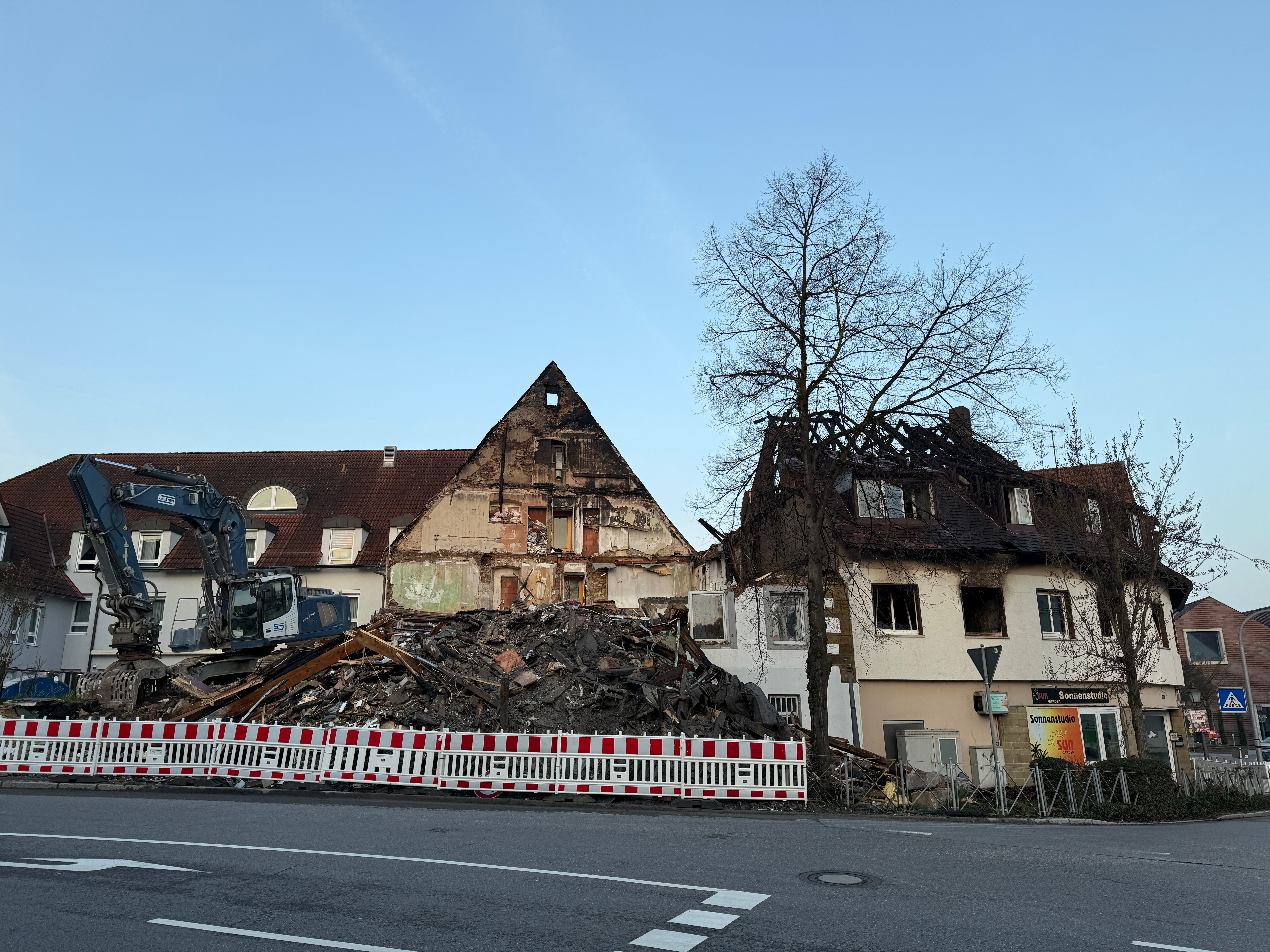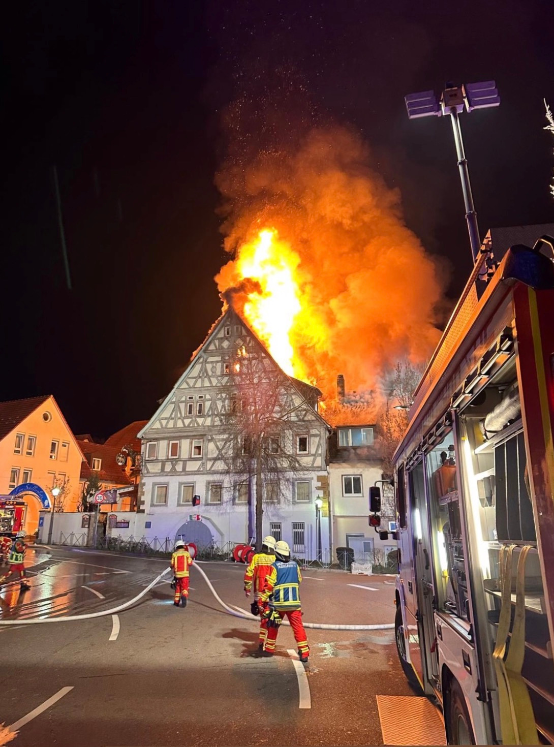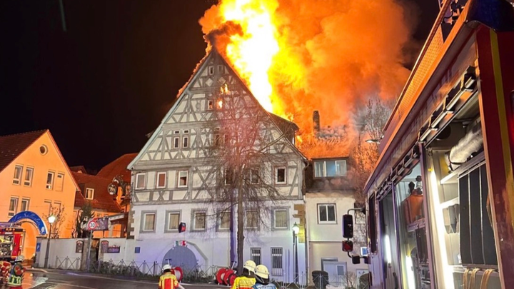 In der Nacht zum 8. März ereignete sich am Schillerplatz in Pleidelsheim eine verheerende Tragödie. Das historische Gebäude „Gasthaus im Ochsen“ stand plötzlich in Flammen und wurde vollständig zerstört. Auch die angrenzenden Häuser am Schillerplatz wurden durch das Feuer schwer beschädigt und sind derzeit unbewohnbar.