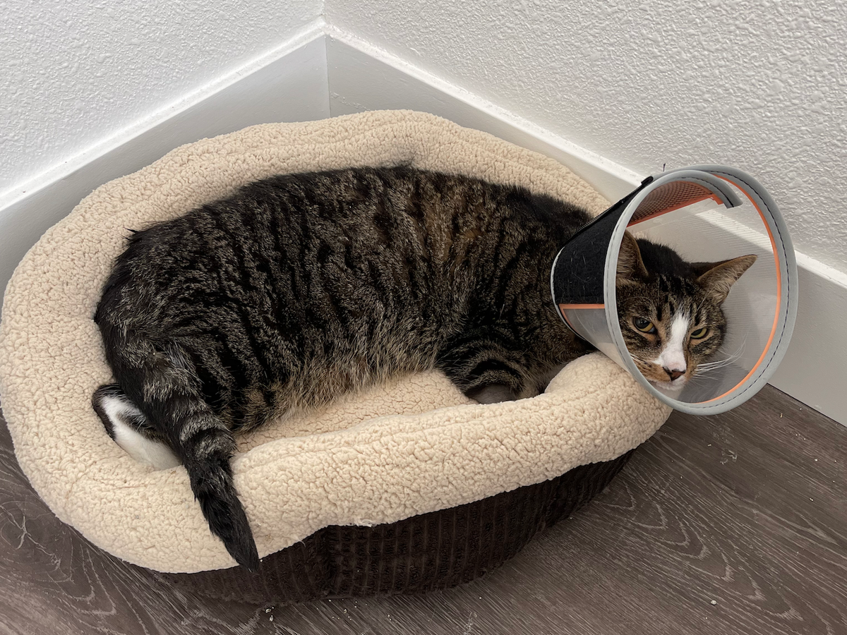 On April 2, a loud sound spooked Brego and he fell off the ledge of our second story loft. We immediately rushed him to the animal hospital and discovered that he had fractured his pelvis and needed surgery. He can't do his favorite party trick anymore and it breaks our hearts!!!