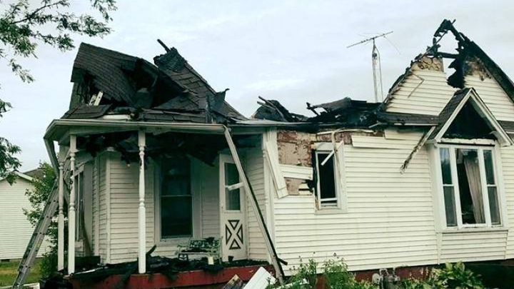 This morning, at 2:45 AM, Colton, their youngest son, woke Rick and Jess to the smell of smoke as they escaped their home, engulfed in flames, from a lightening strike.   Within 20 minutes the roof had caved in and the firefighters worked tirelessly even beyond daybreak to stop the flames.  Thankfully, the entire family, including the kitty (who was rescued from under their bed after the firefighters arrived), made it out of the home safely.  Professionals will determine what may be salvagable, but at this time very few things made it out of the house with them.