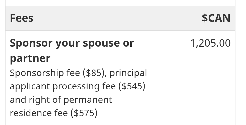 PRICE BREAKDOWN: Sponsoring a spouse or partner.