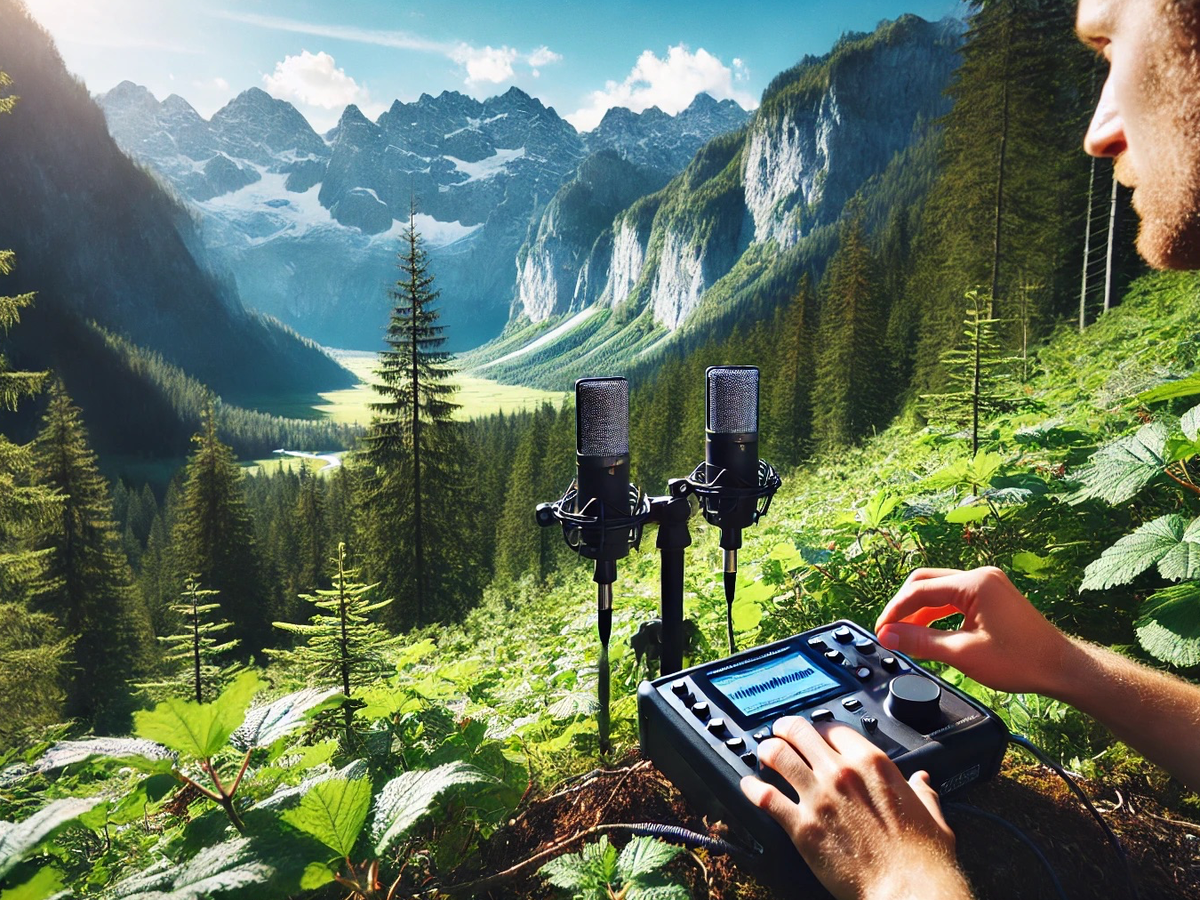 **• Binaural Tripod-Mounted Microphones:** These are used to capture high-quality, professional soundscapes that bring audio to life. They are ideal for recording natural environments, urban atmospheres, and more.