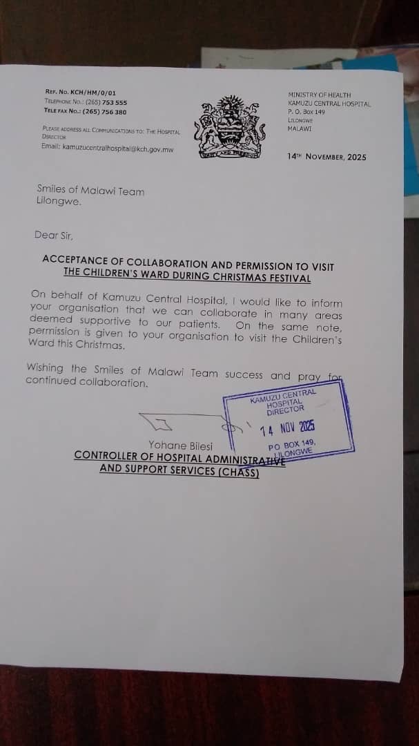Every donation directly funds Smile Packages — care bundles for hospitalized children at Kamuzu Central Hospital.