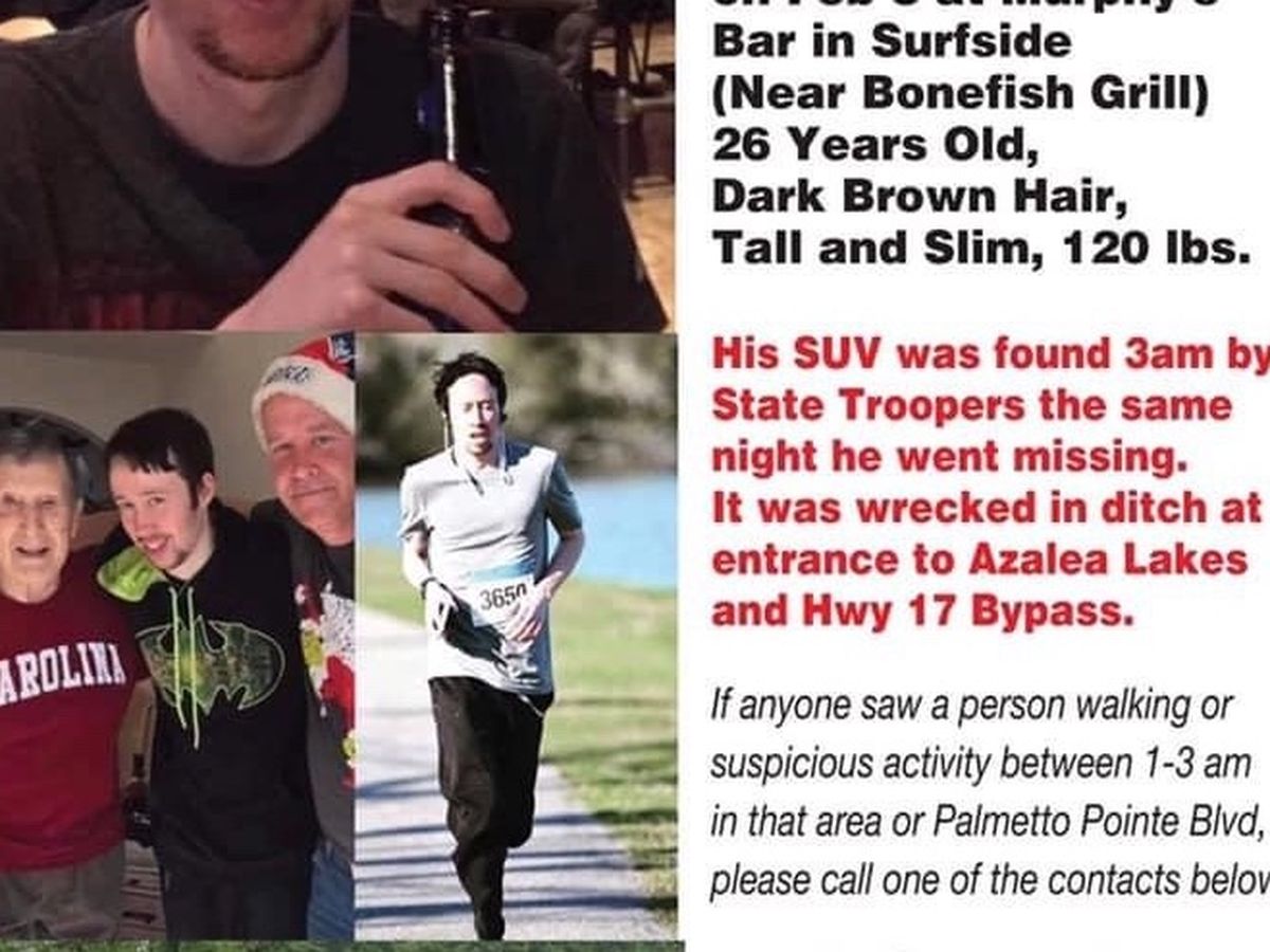 Help and prayers needed. John’s son, Corey Morrison is missing. He was last seen Super Bowl night at Murphy’s in Surfside. He didn’t show for work this morning and that’s when John and I were both contacted because this is out of character for him. We have been in contact with many people who saw him that night. We have also filed a missing persons report and he is now in the system. He is 26 years old, dark brown hair and weighs 120 pounds soaking wet. He’s a marathon runner and does very little outside of work. If you have ANY information about his whereabouts, please contact me at [phone redacted] or his Dad, John at [phone redacted] or Officer Glazier with the Horry County Police Dept @ [phone redacted]. His case number is #2021011081