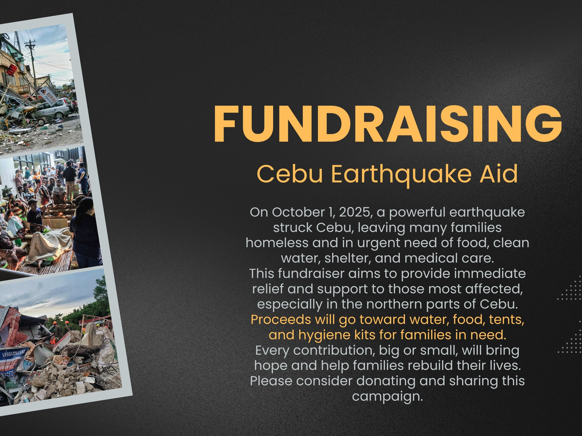 On the night of September 30, 2025, a powerful earthquake struck Cebu, leaving many families homeless and in urgent need of food, clean water, shelter, and medical care.