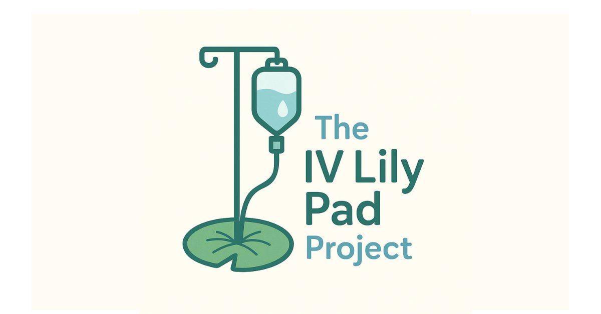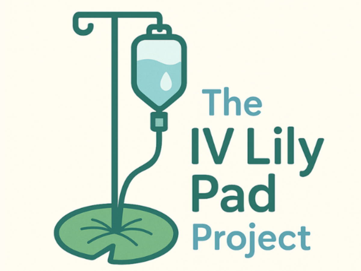 An IV lily pad is a platform decorated with kid-friendly art placed at the base of an IV pole to make the experience of receiving an infusion treatment less challenging and stressful for young patients. Young patients can sit, stand, or enjoy the lily pad platform while undergoing these infusions.