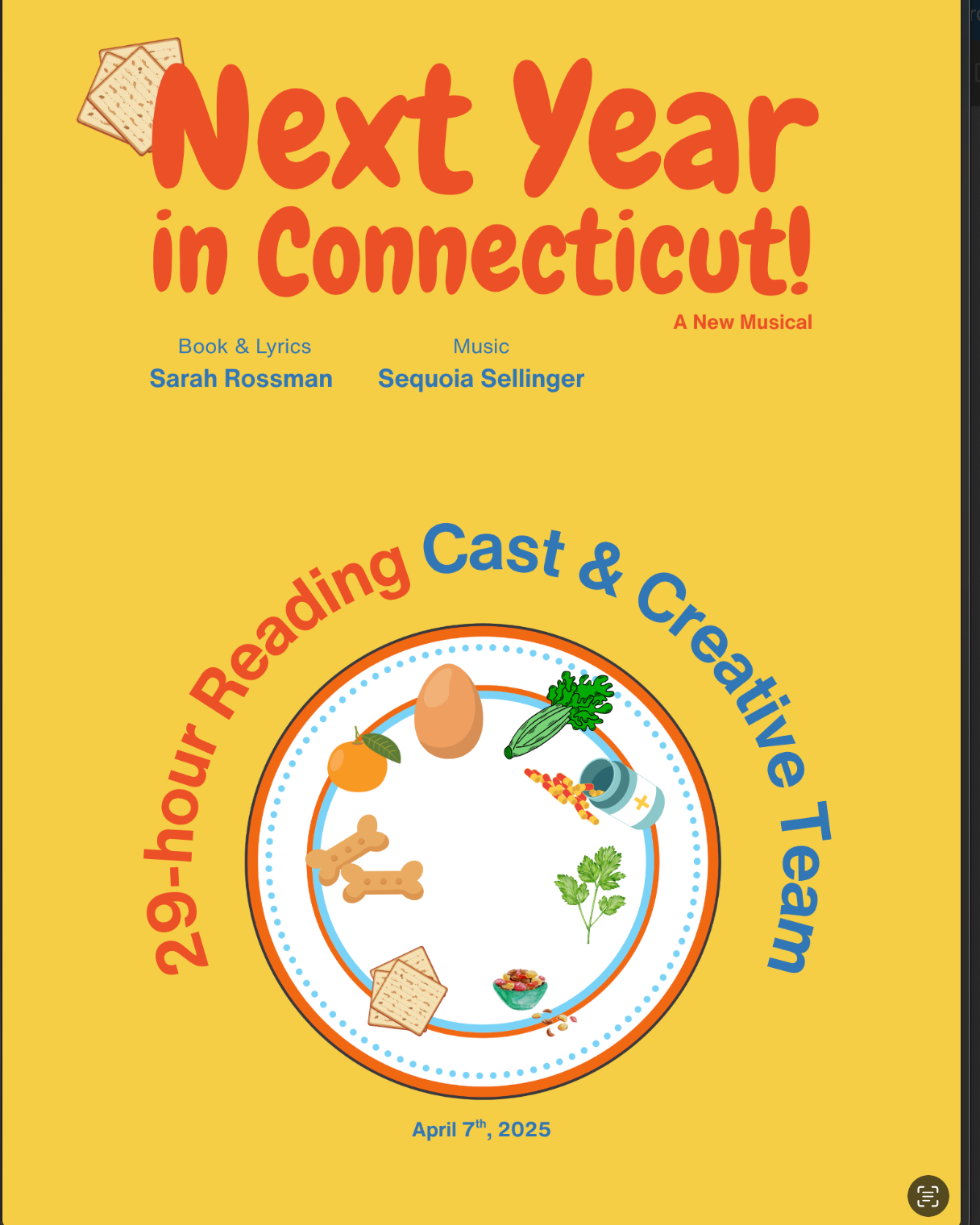 Next Year in Connecticut! features forbidden romance, Brisketgate, a dog shiva, an Exodus tap dance number, and hey, this might be the year that Elijah (the prophet) shows up! Set over the course of one Passover seder, NYIC!, written by Sarah Rossman (book & lyrics) and Sequoia Sellinger (music), is a musical love letter to dysfunctional families that explores how mental illness hijacks family systems and redefines normalcy. Welcome to seder with the Stablemans, where mental illness is abundant, boundaries are negligible, and laughter and disaster go hand in hand.