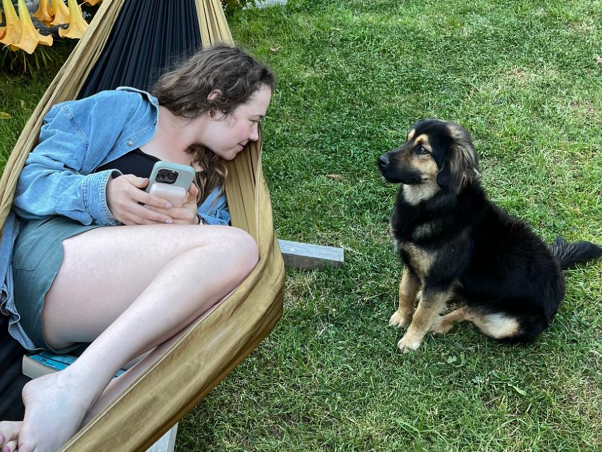 I was sitting in my hammock reading when this little guy wandered up to me out of nowhere, skinny, matted, and looking lost. He sat down like he’d known me forever. Since that moment, he’s followed me everywhere—through towns, hikes, cafes—you name it.