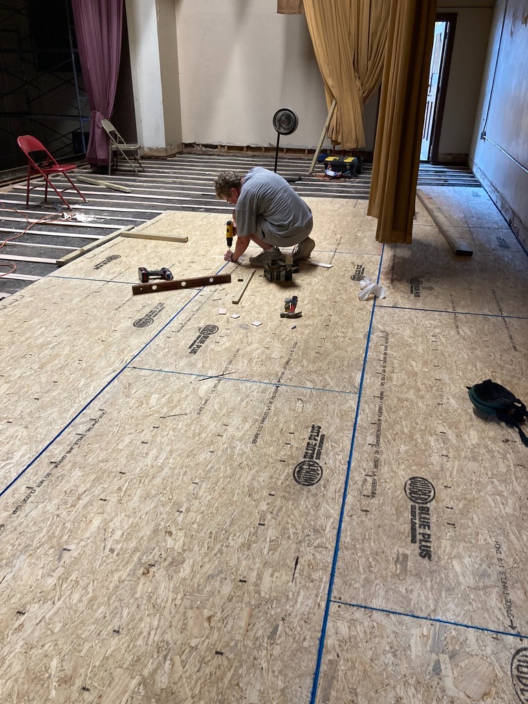The auditorium renovation is so close to completion. We have a new roof, new windows and doors, new electrical, new blackout blinds, new stage flooring, a new digital projector, and painting is in process. Our one outstanding large expense is a new HVAC system. As you can imagine, this is a big space, and a few window units and wall heaters won't do. Based on a recent estimate, we have 75% of the funds in hand...can you push us over the top? We need at least $20,000 more. It may feel out of reach, but many people have expressed a desire to see the old theater restored! Here is your chance to make it happen! And you don't have to leave the couch!