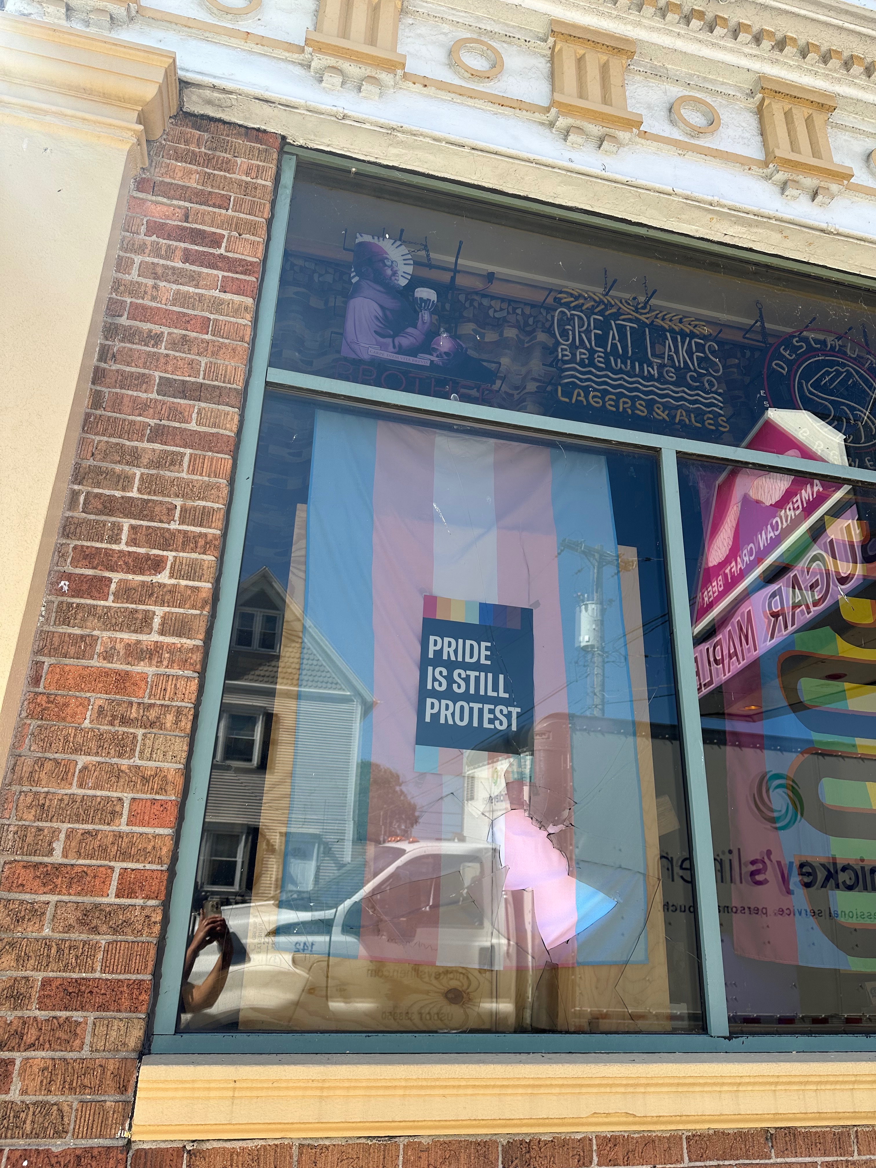 To the person that threw the rock, conveniently through the window with our trans pride flag hanging and our "PRIDE IS STILL PROTEST" poster. You suck.