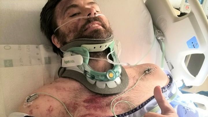 He was taken to Siena's ER Trauma Center stabilized and then transported to Sunrise Trauma Center for more acute care. Daniel suffered 2 cervical (neck) fractures, numerous other spinal fractures, 5 broken ribs, a partially collapsed lung, a lacerated adrenal gland, broken teeth and severe road rash over 75% of his back.