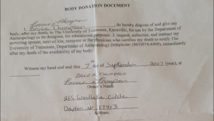 everyone who knew my dad knew his wishes were to be sent to the body farm in TN. We have just found out they will not accept him because of the length of time between death and medical examination. Ashley, April and myself didn’t plan for this because we thought it was already taken care of. Anything and everything my helps. Our father was a well loved man. Thank you