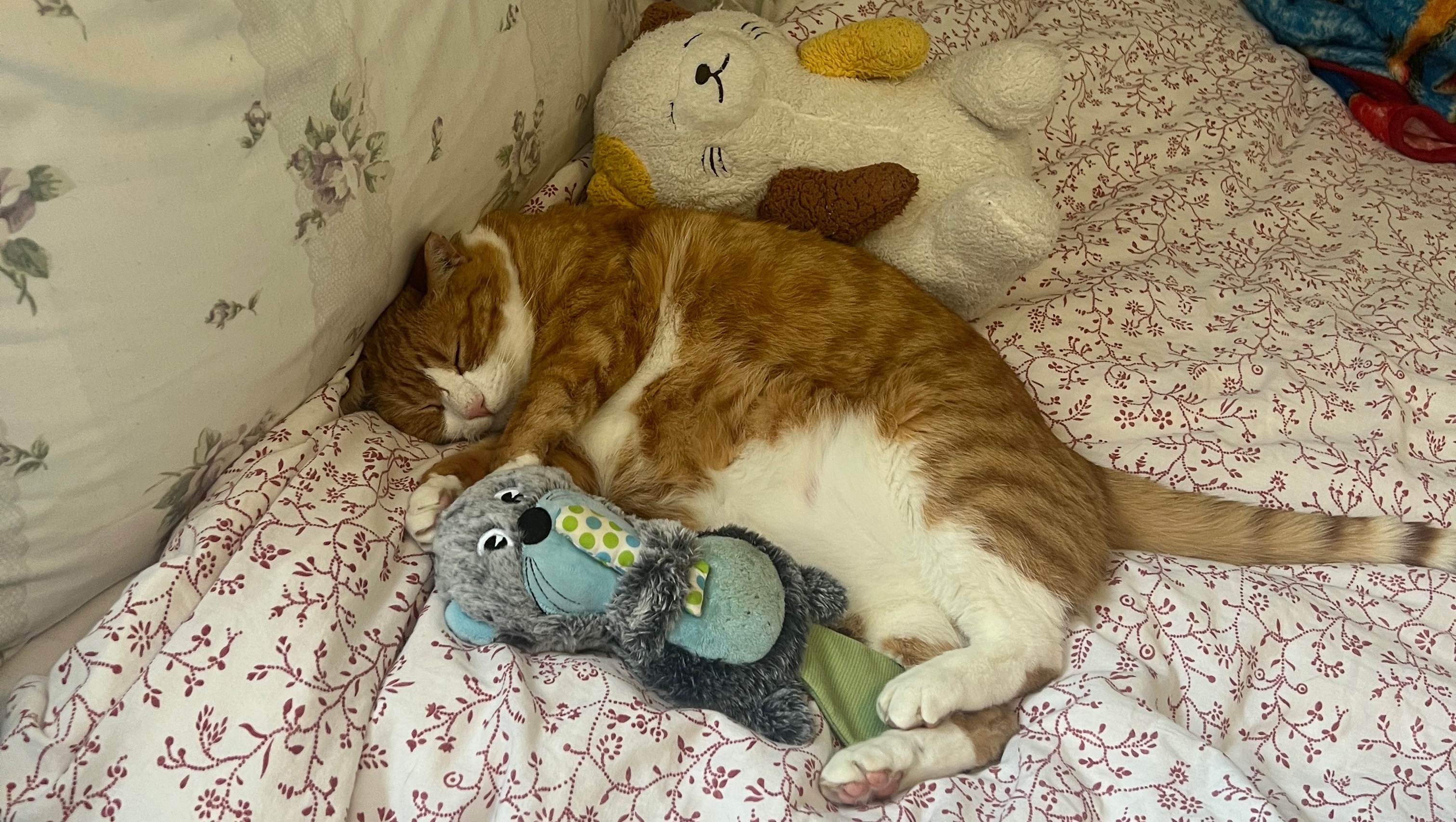 Bruno is an orange-white domestic tabby who is 14 years old. When I met Bruno, he was a boy who slept all day by the window at the CatFe. I fell in love with him instantly as reminded me of my favourite cartoon cat, Garfield. I had to adopt him. I saved him when he was 6 years old, and he saved me at 22 years old.