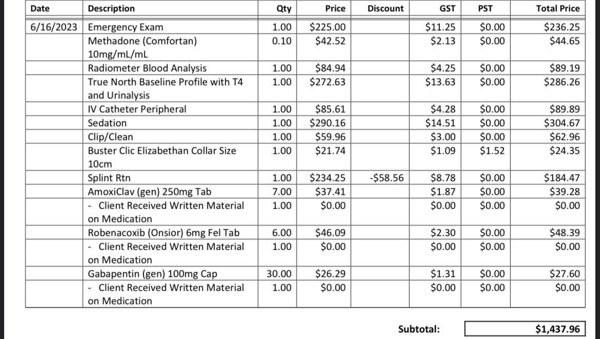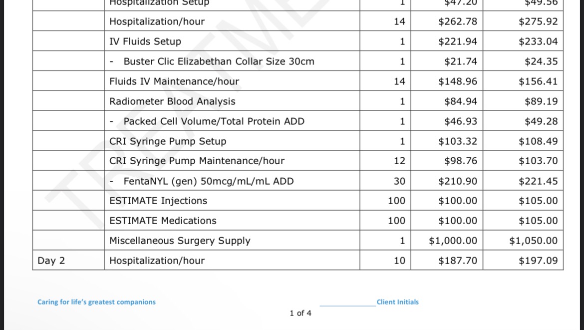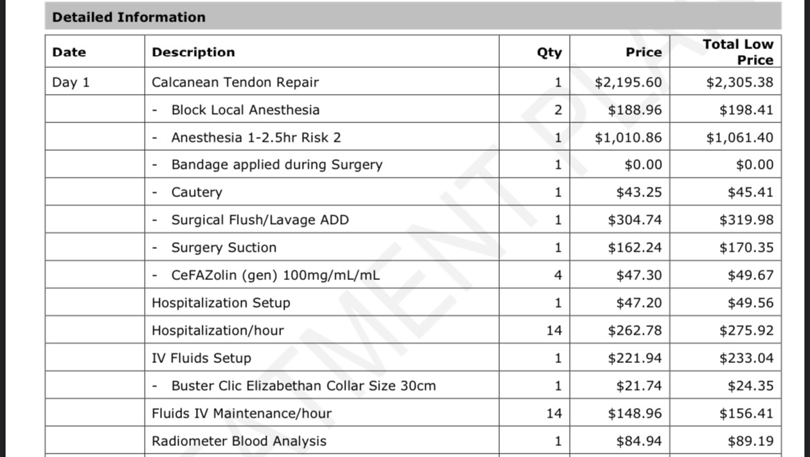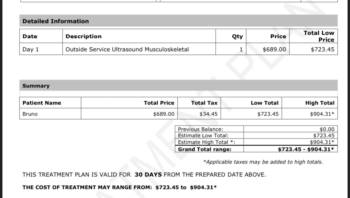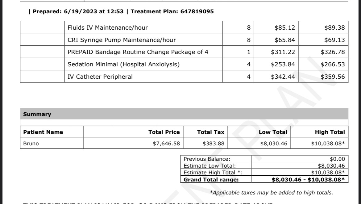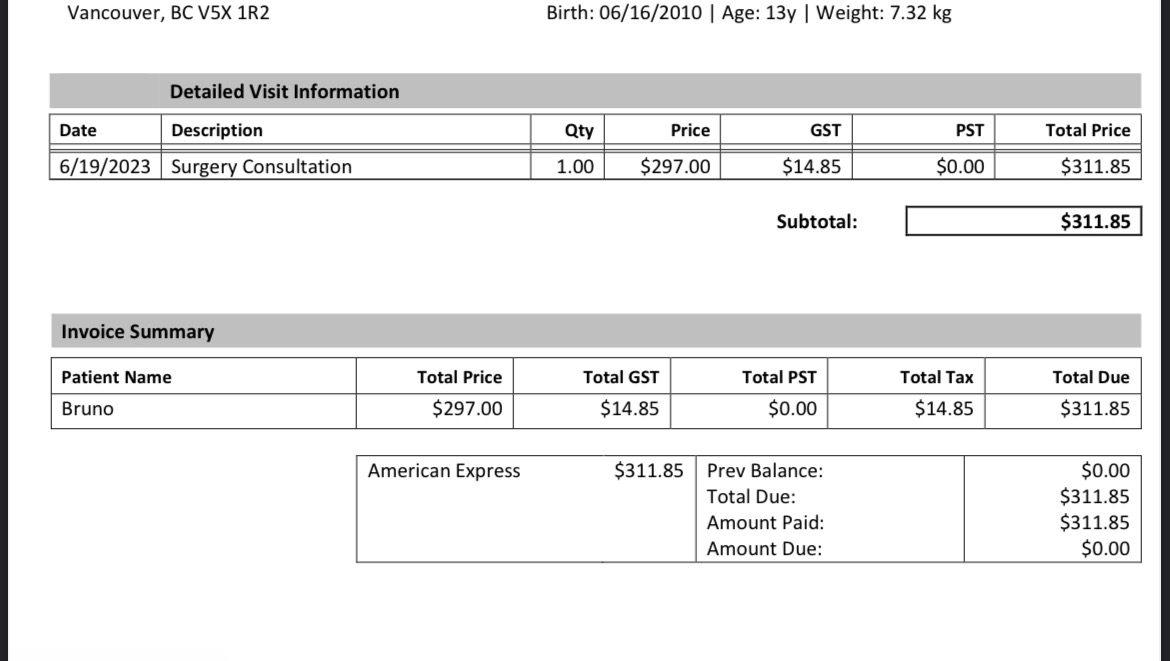 Bruno’s surgery and vet bill