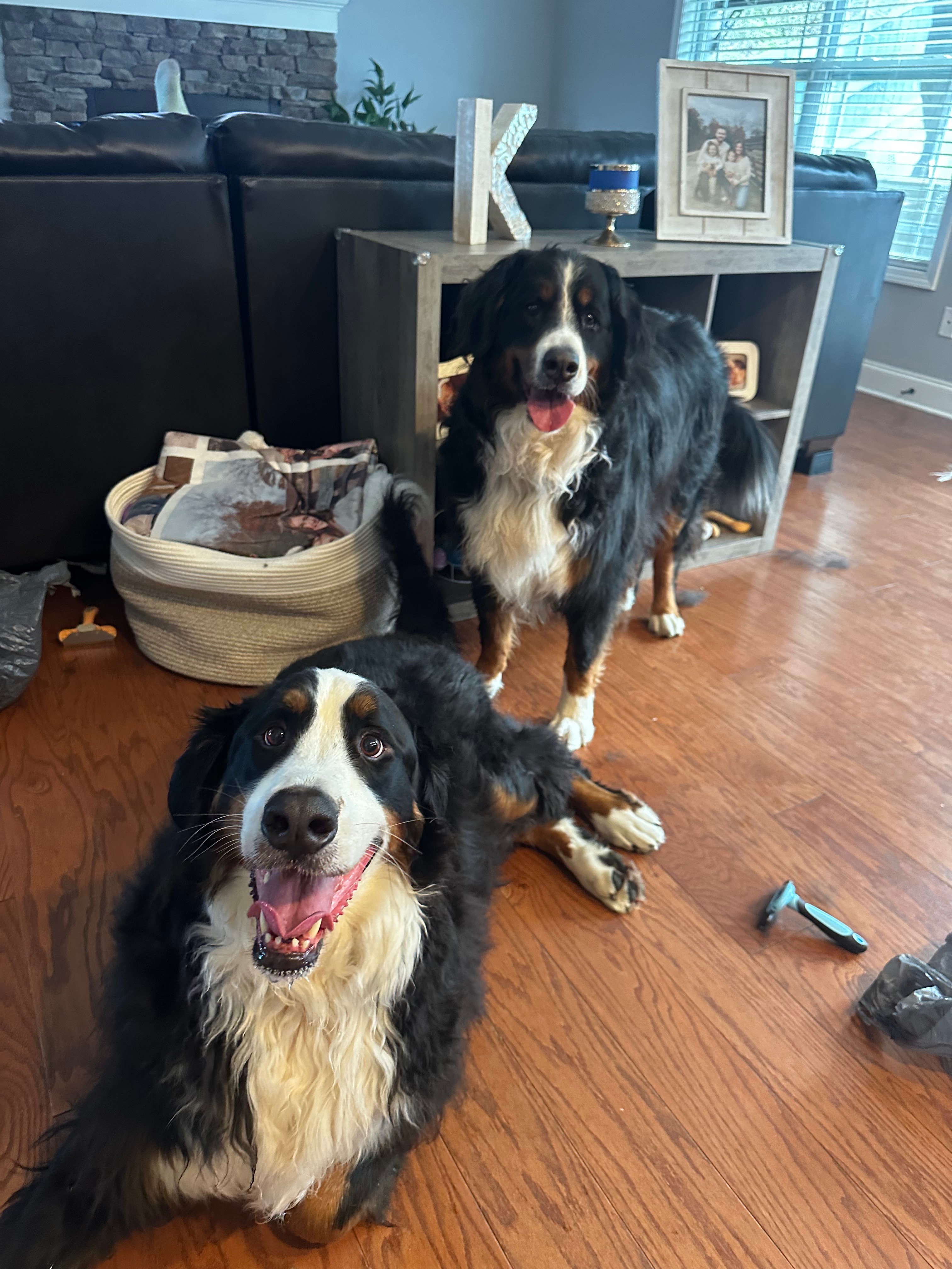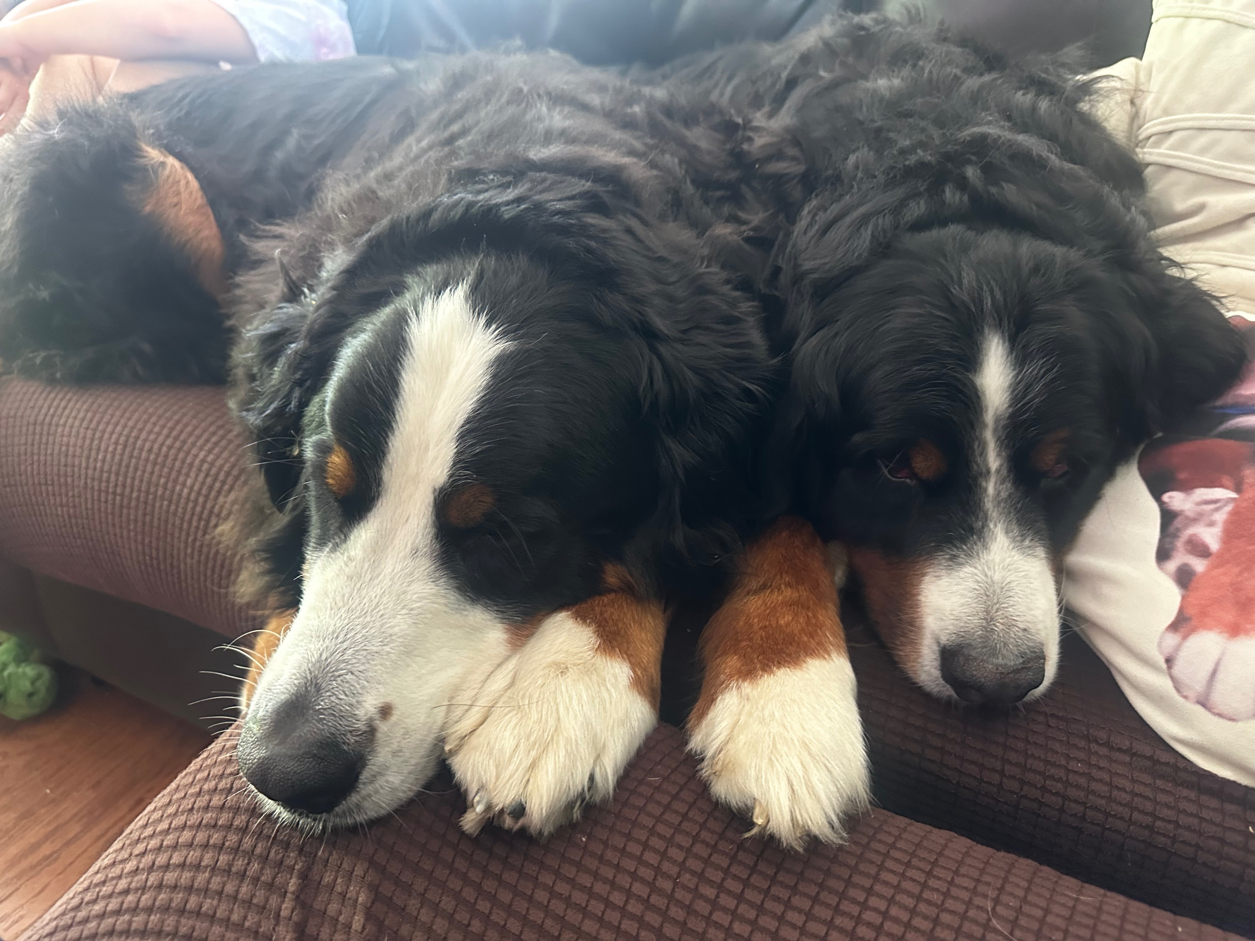 Hey friends, we need some help. My dad had a stroke 4 weeks ago and has been in the hospital ever since so Mom was left by herself to hold down the fort. She unfortunately had a fall 10 days later and broke her arm. A very unfortunate series of events for sure. But that means their dogs Bruce and Cody have had to be boarded for the last two weeks and we appreciate their breeder berner valley farm 270 (momma Dwynette) so much for helping us get them out of the Kennel and out to the farm.