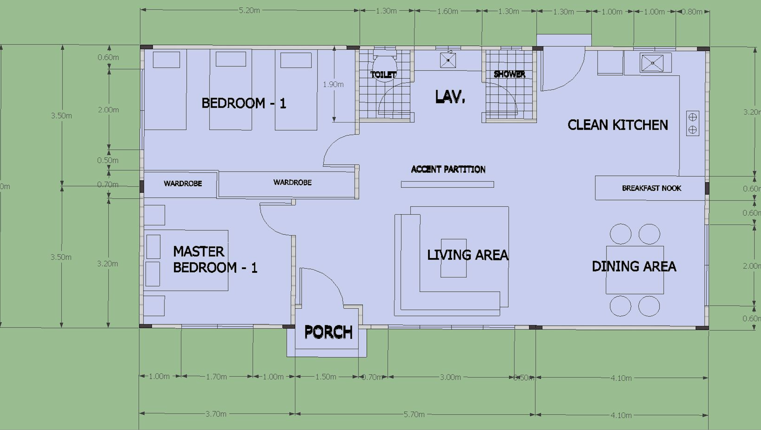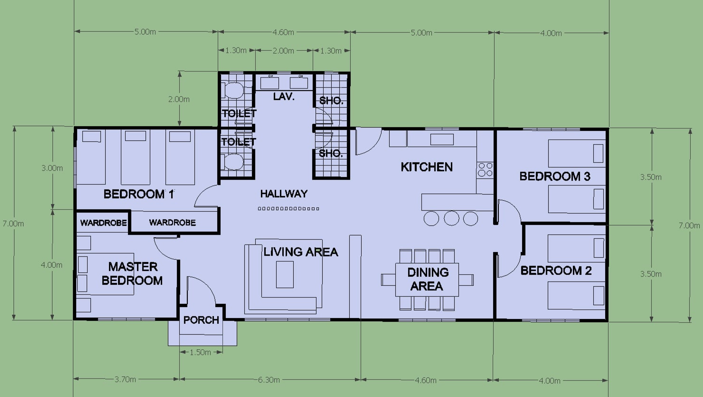 Here are the plans for these dwellings, small for 4 people, medium for 6-8 people, and large for 8-10 people.