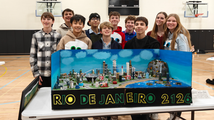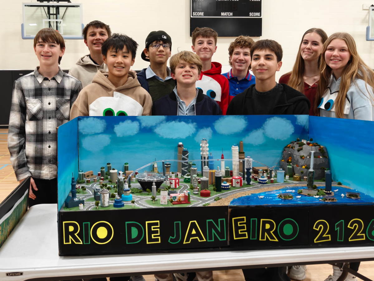 The Team Rio project for Future Cities was tasked with designing a city that eliminates food waste from farm to table and keeps its citizens healthy and safe . The Rio team won first place at the regional competition in Topeka on January 17th, which qualified them to go to the national competition in Washington, D.C. The students, teachers and engineering mentors have worked for months preparing and building models, practicing presentations, and researching and developing ideas for competition. All of that work paid off with a first place win!