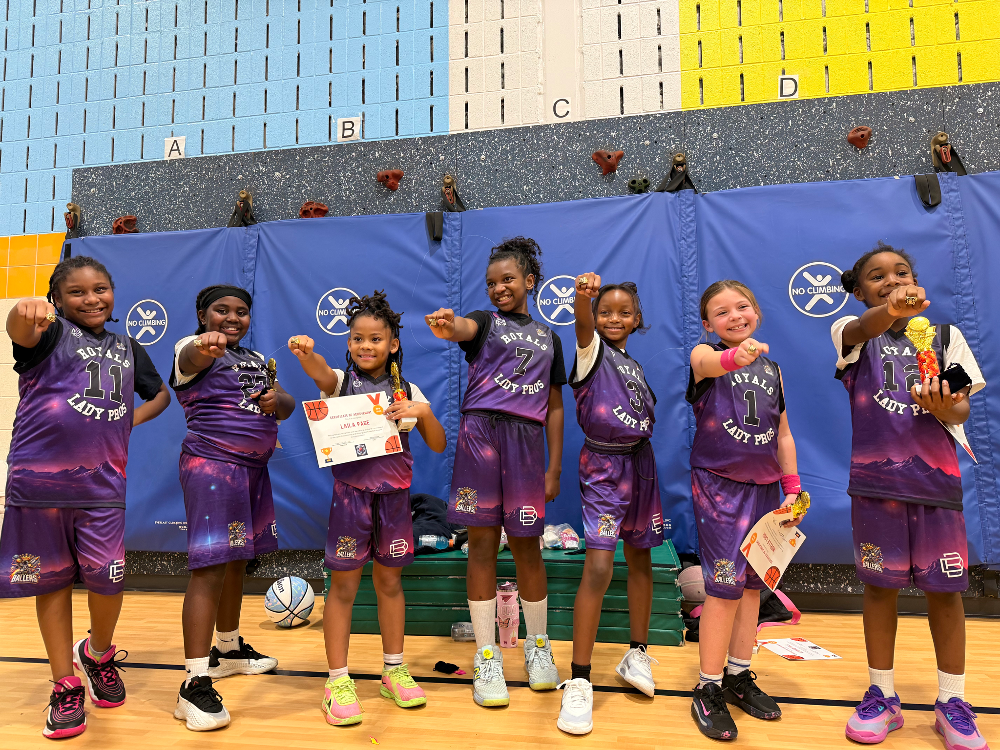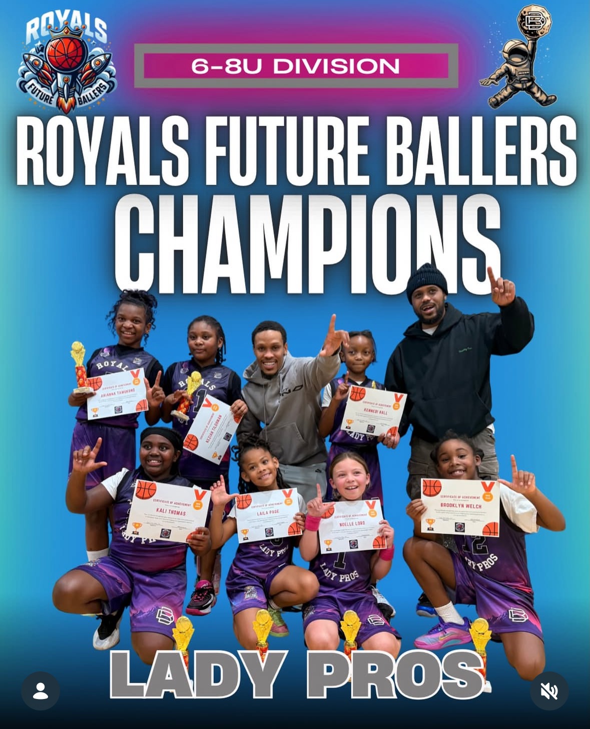 After months of developing the girls' confidence, skills and discipline, the Lady Pros won all but one game capturing the Royals Future Ballers 6-8 Youth Division Championship, in their 3rd season.