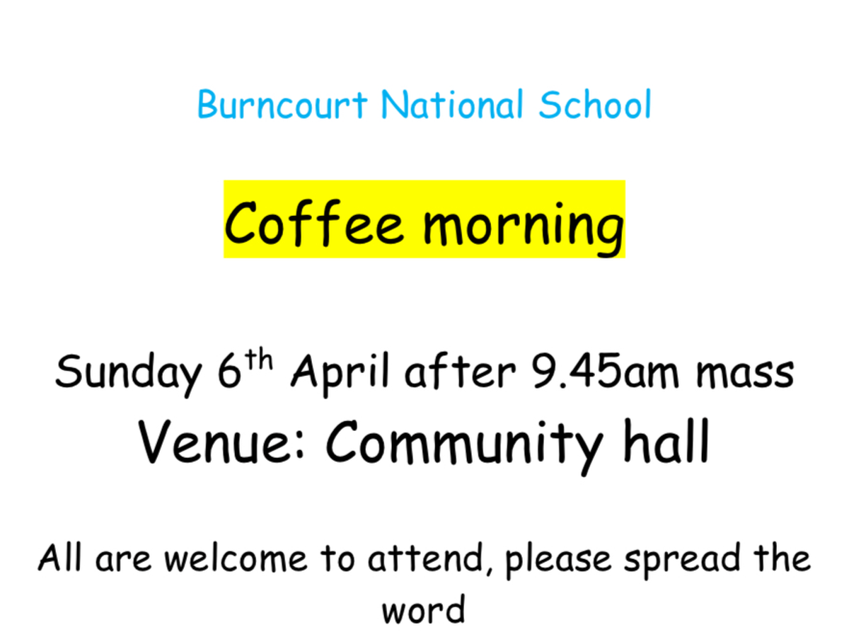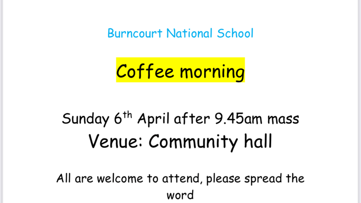 We are hosting a coffee morning on Sunday 6th April after mass to raise funds for our school. All are welcome to attend!