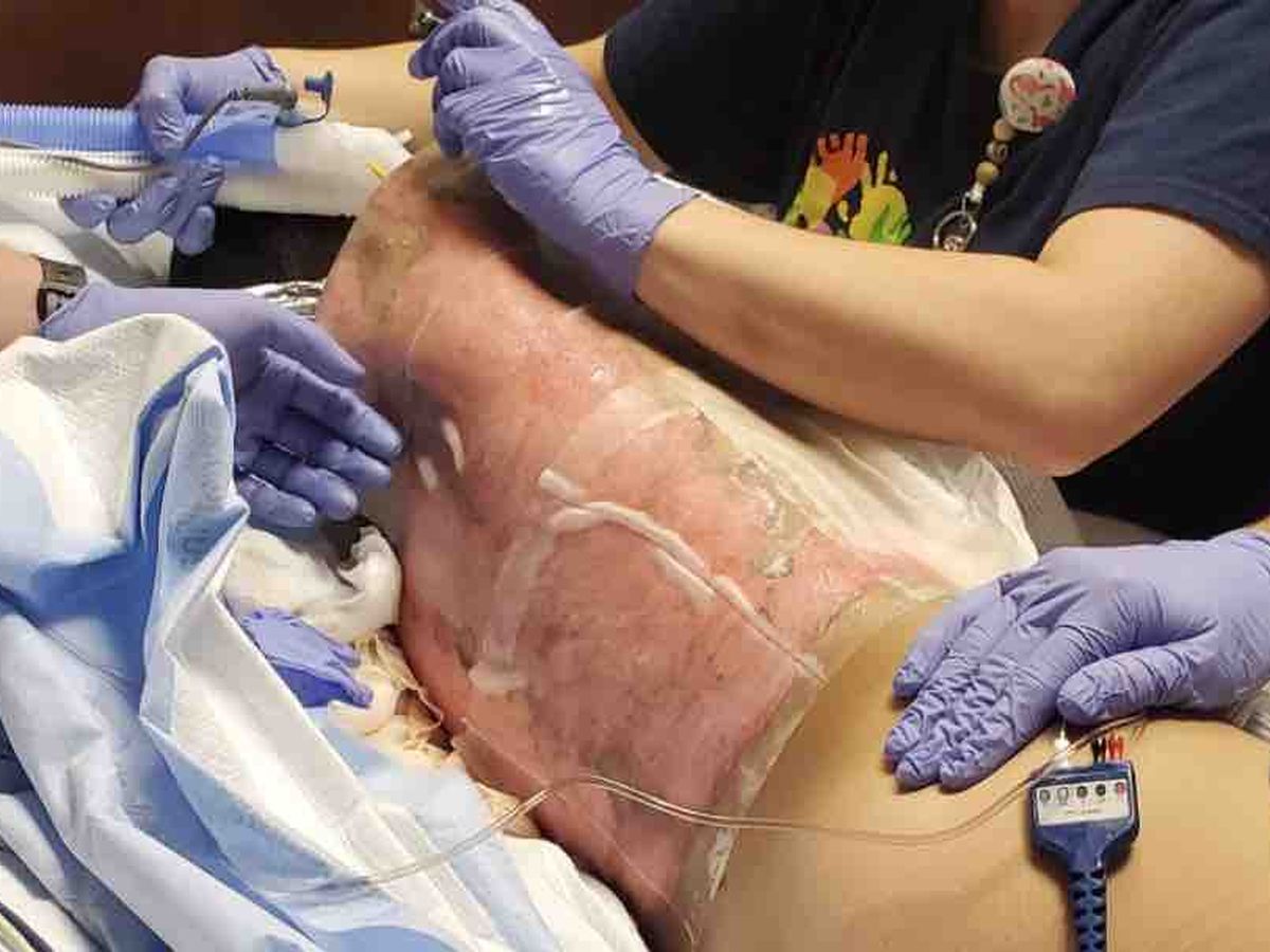 Pictured is his back, but he has burns on his arm, neck, chin, stomach & side.